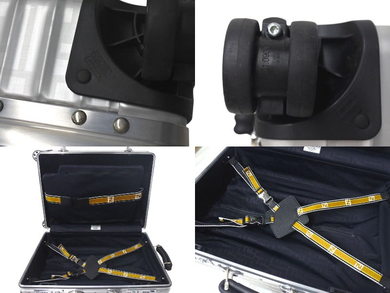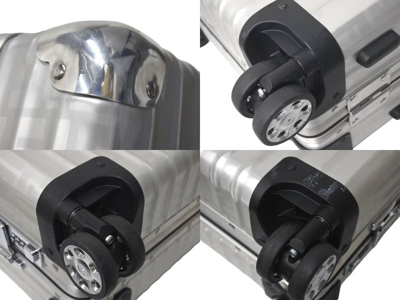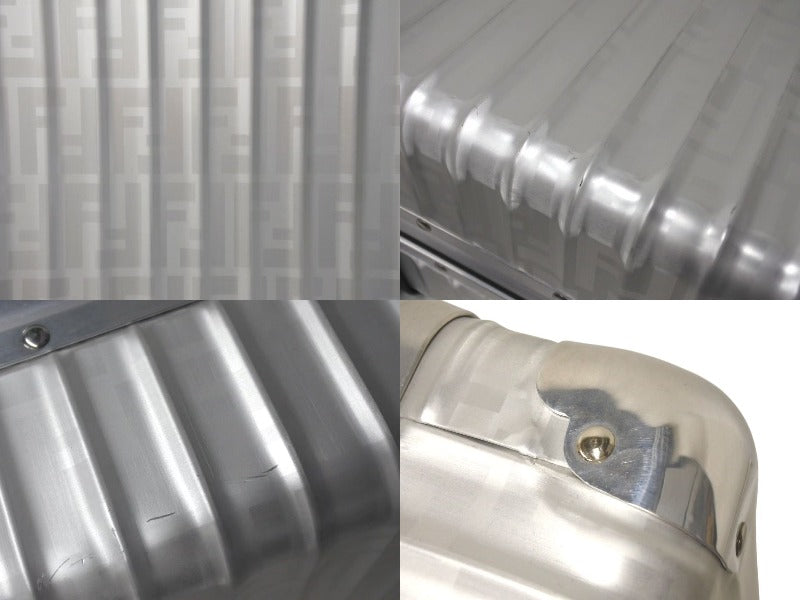 表面にフェンディのロゴデザインが全面にデザインされリモワの軽量かつ耐久性に優れたアルミ素材による頑丈さのあるお洒落なキャリーケースです。