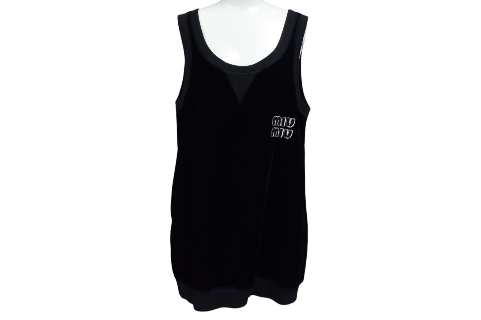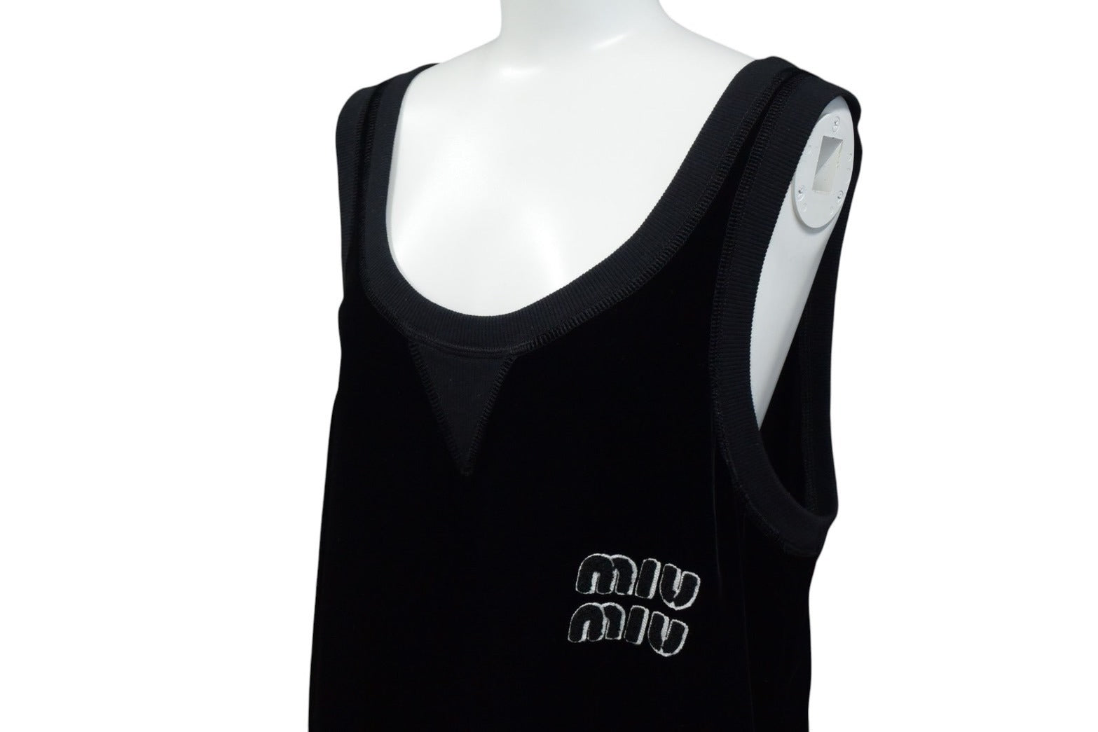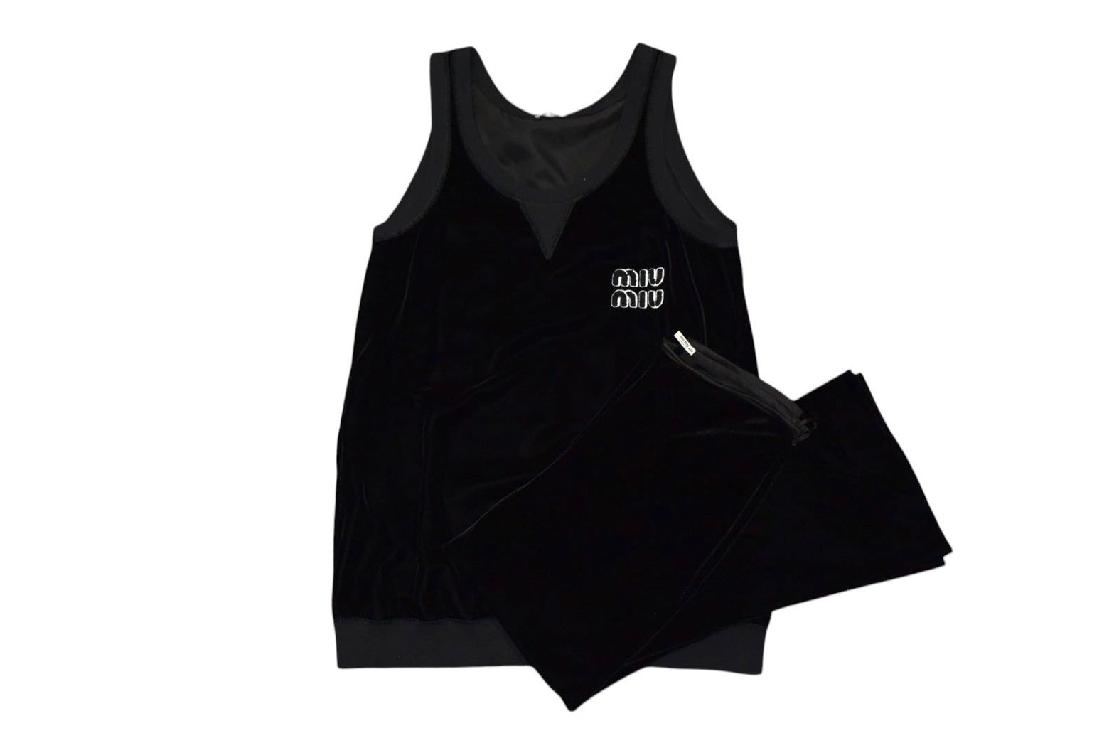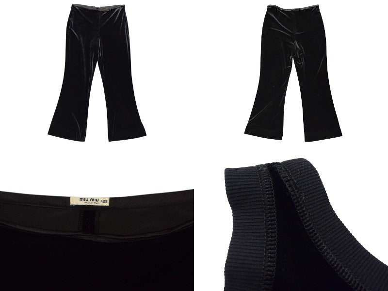 MIUMIU ミュウミュウ タンクトップ パンツ セットアップ ロゴパッチ ブラック ベロア サイズ36 42S 美品 中古 4c076341