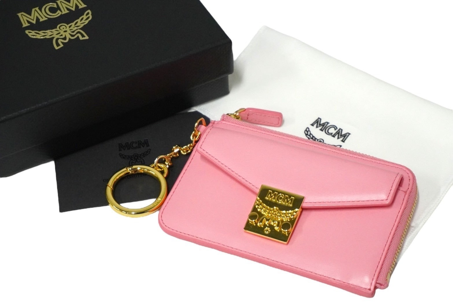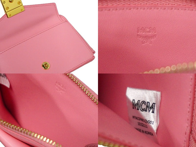 新品未使用品 MCM エムシーエム カードケース コインケース フラグメントケース MYACSPA01 ピンク ゴールド金具 中古 57767