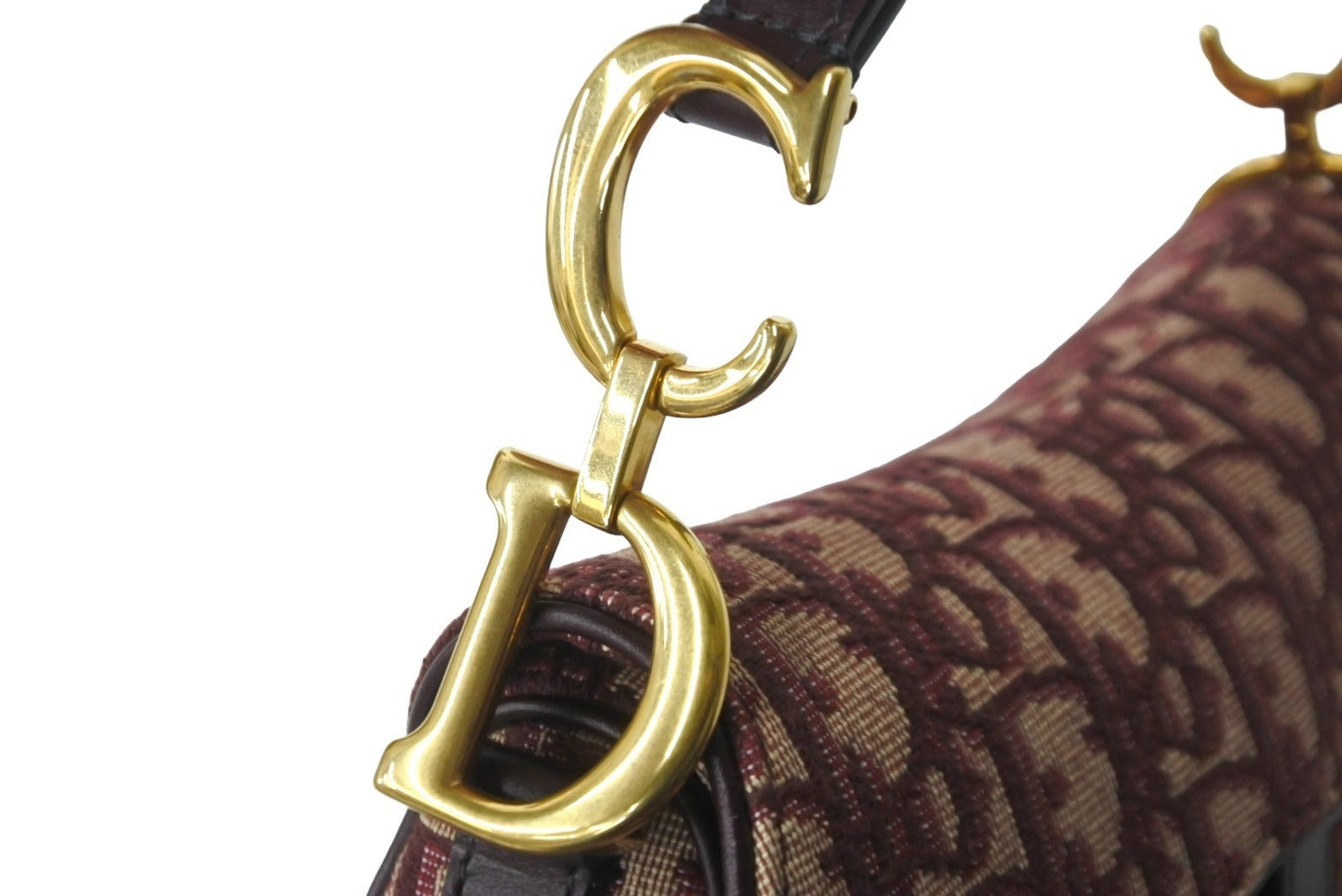 極美品 Christian Dior クリスチャンディオール ハンドバッグ オブリーク ミニ サドルバッグ レッド 05-RU-1108 中古 58977