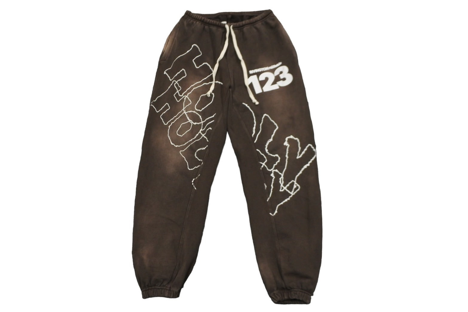 極美品 RIVINGTON roi Rebis123 リヴィントンロイレビス123 スエットパンツ テーパード ロゴプリント ブラウン サイズS 中古 59410