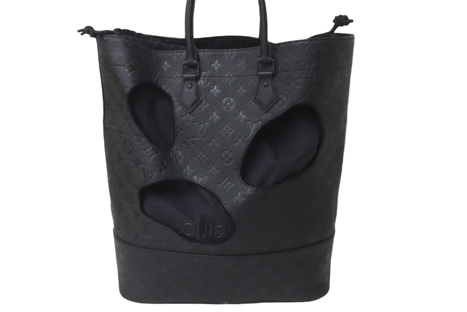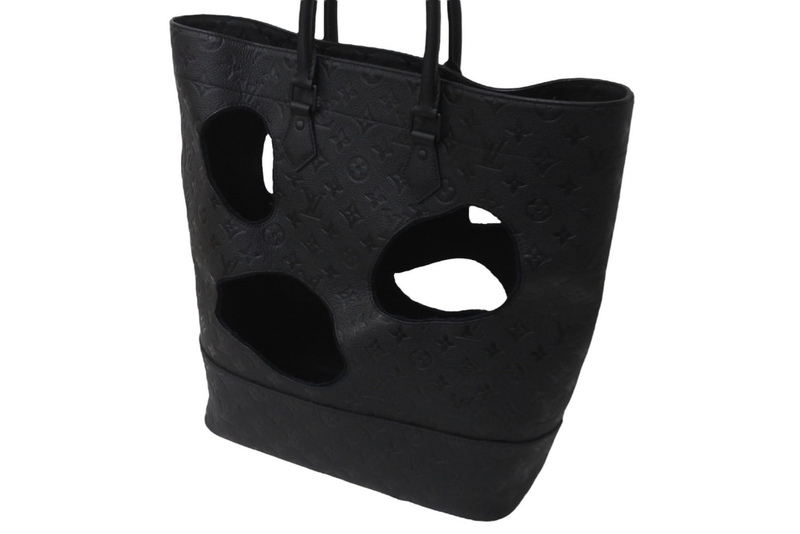 「バッグ ウィズ ホールズ」は、2014年に発表されたコラボレーションプロジェクト「アイコンとアイコノクラスト:Celebrating Monogram」にて初披露された川久保玲デザインのバッグ。端が切りっぱなしになっている穴が開いているのが特徴だ。2014年当時のフォルムを生かしつつ、新たな限定モデルとして「バッグ ウィズ ホールズ」が登場。エンボス加工でモノグラム・パターンを施したブラックのグレインカウハイドレザーに大胆な穴を開け、内装には取外し可能なテキスタイル製ポーチを配した。