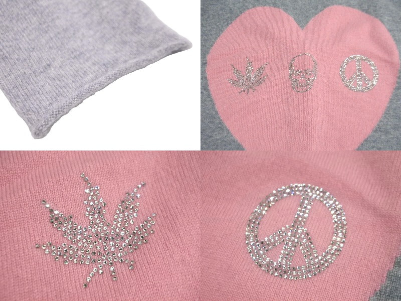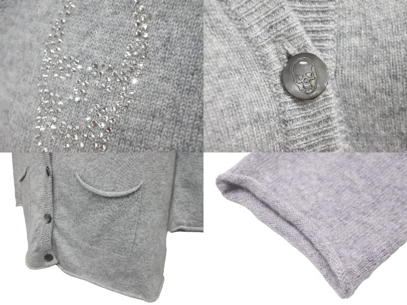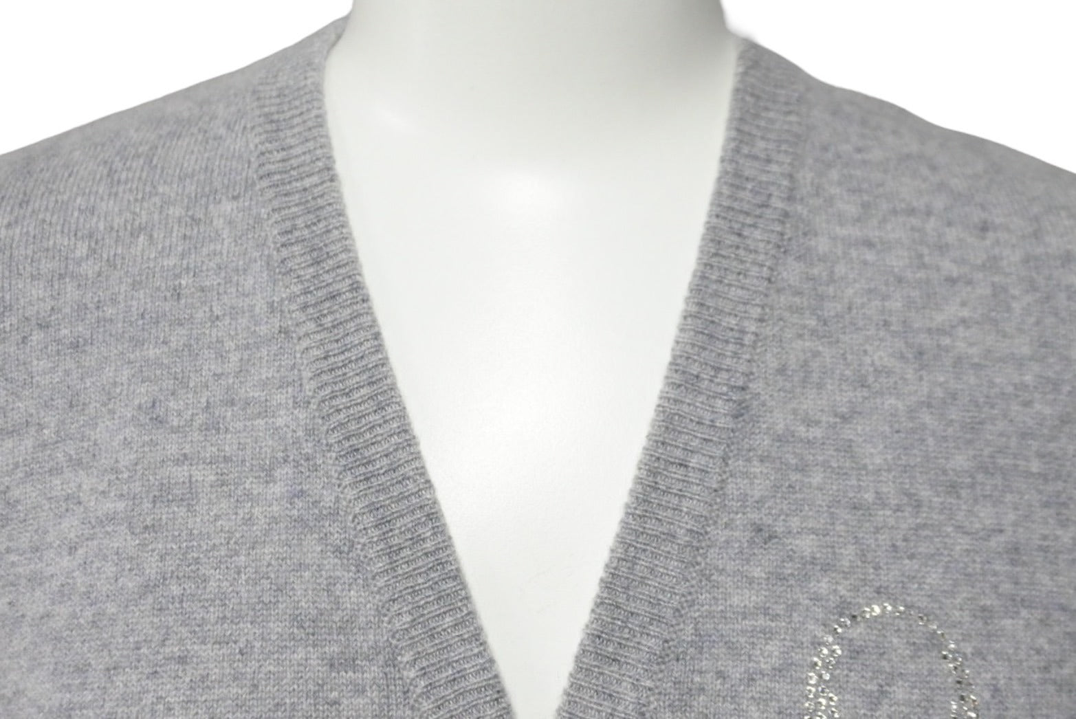 極美品 Lucien Pellat-Finet ルシアンペラフィネ カーディガン ハート スワロフスキー グレー カシミヤ サイズS 中古 59950