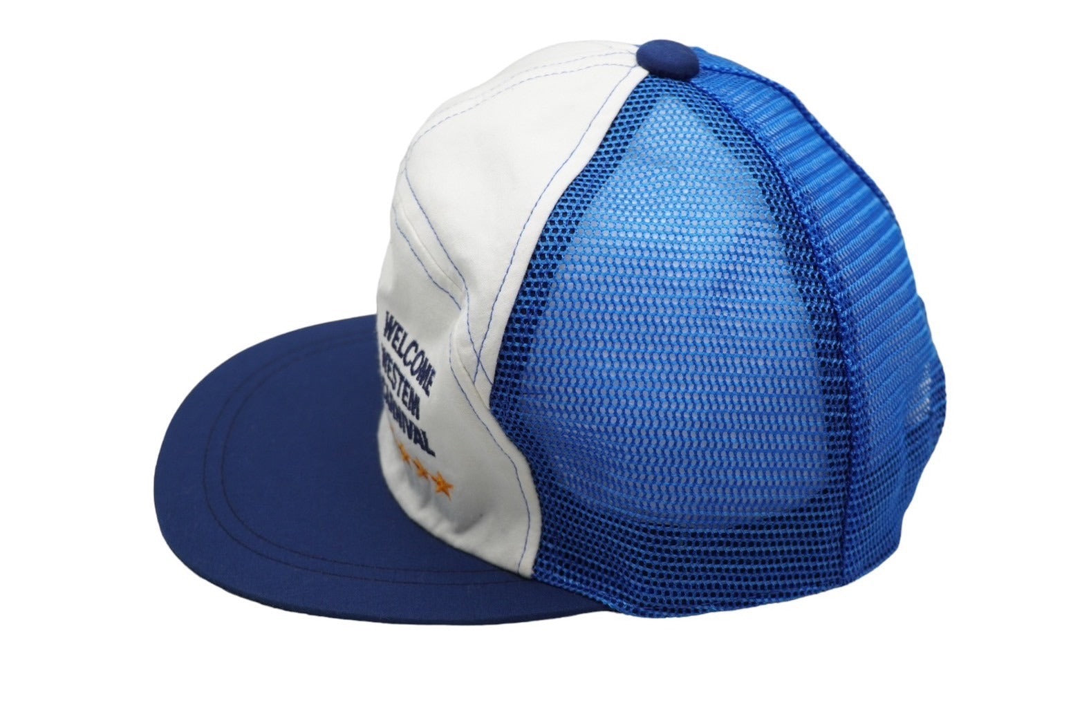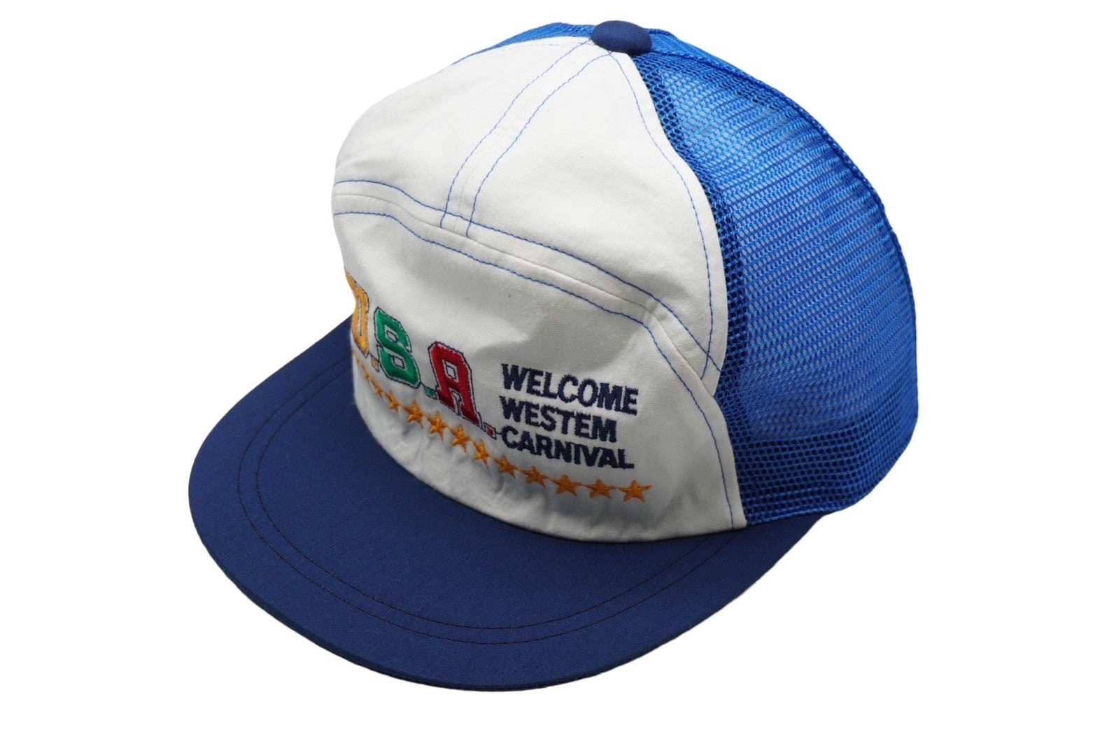 U.S.A WELCOME WESTEM CARNIVAL メッシュ キャップ ブルー 帽子 刺繍 ホワイト ナイロン 54CM 美品 中古 60740