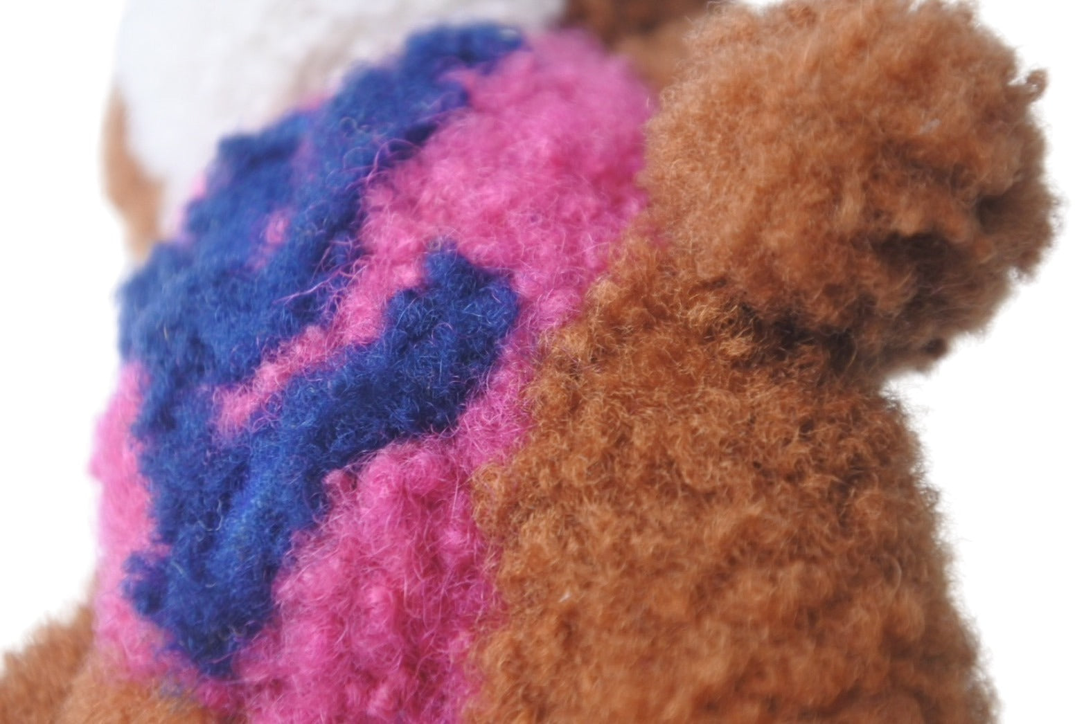 遊び心溢れるぬいぐるみに、インターシャ(象嵌細工)技法でパッチワークのようにLVイニシャルをあしらったアイテムです。