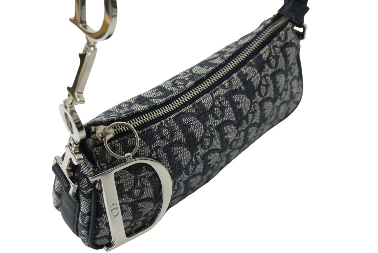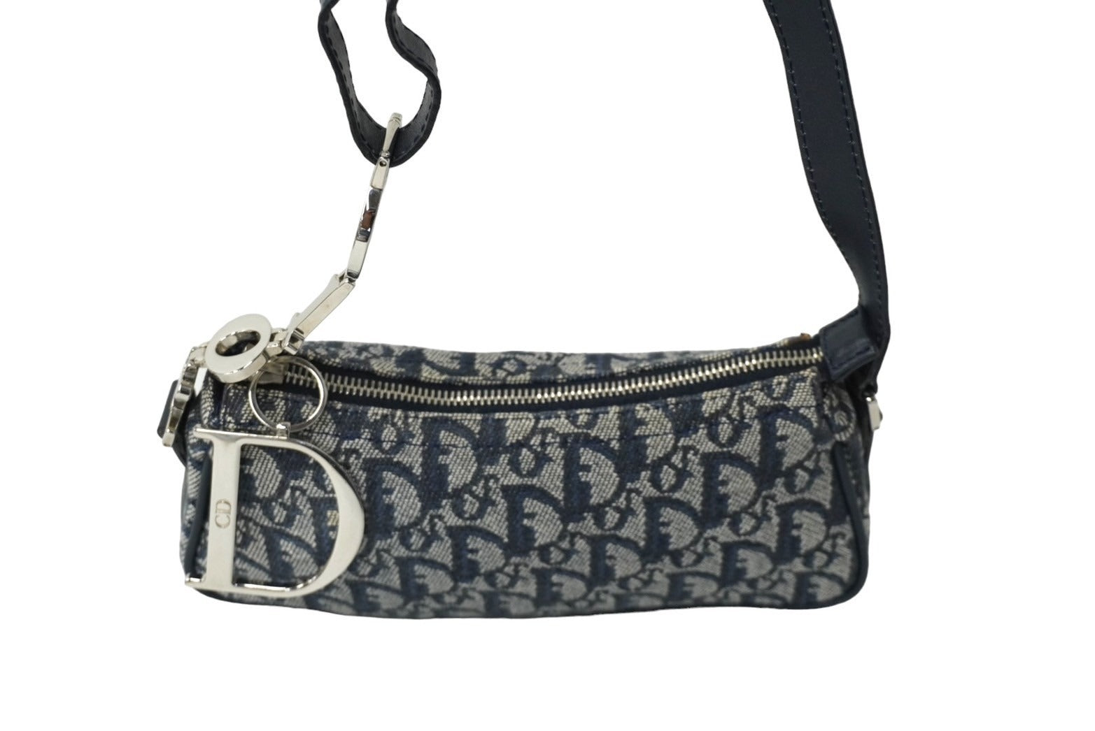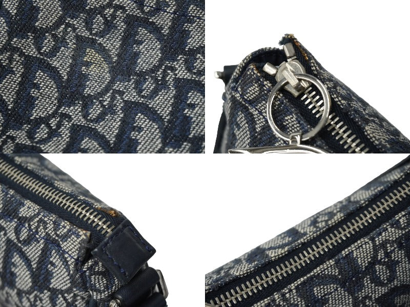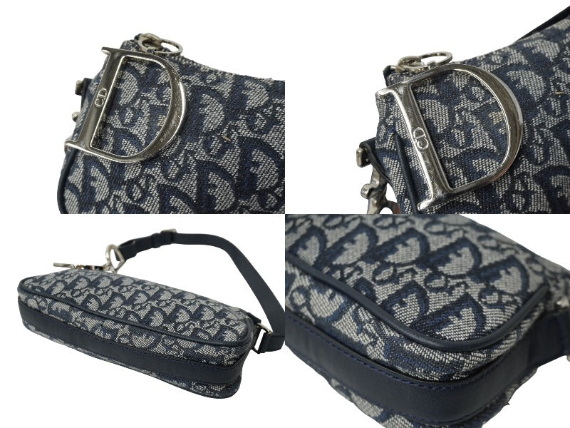 Christian Dior クリスチャンディオール ワンショルダー ハンドバッグ トロッター シルバー金具 ネイビー 美品 中古 61961