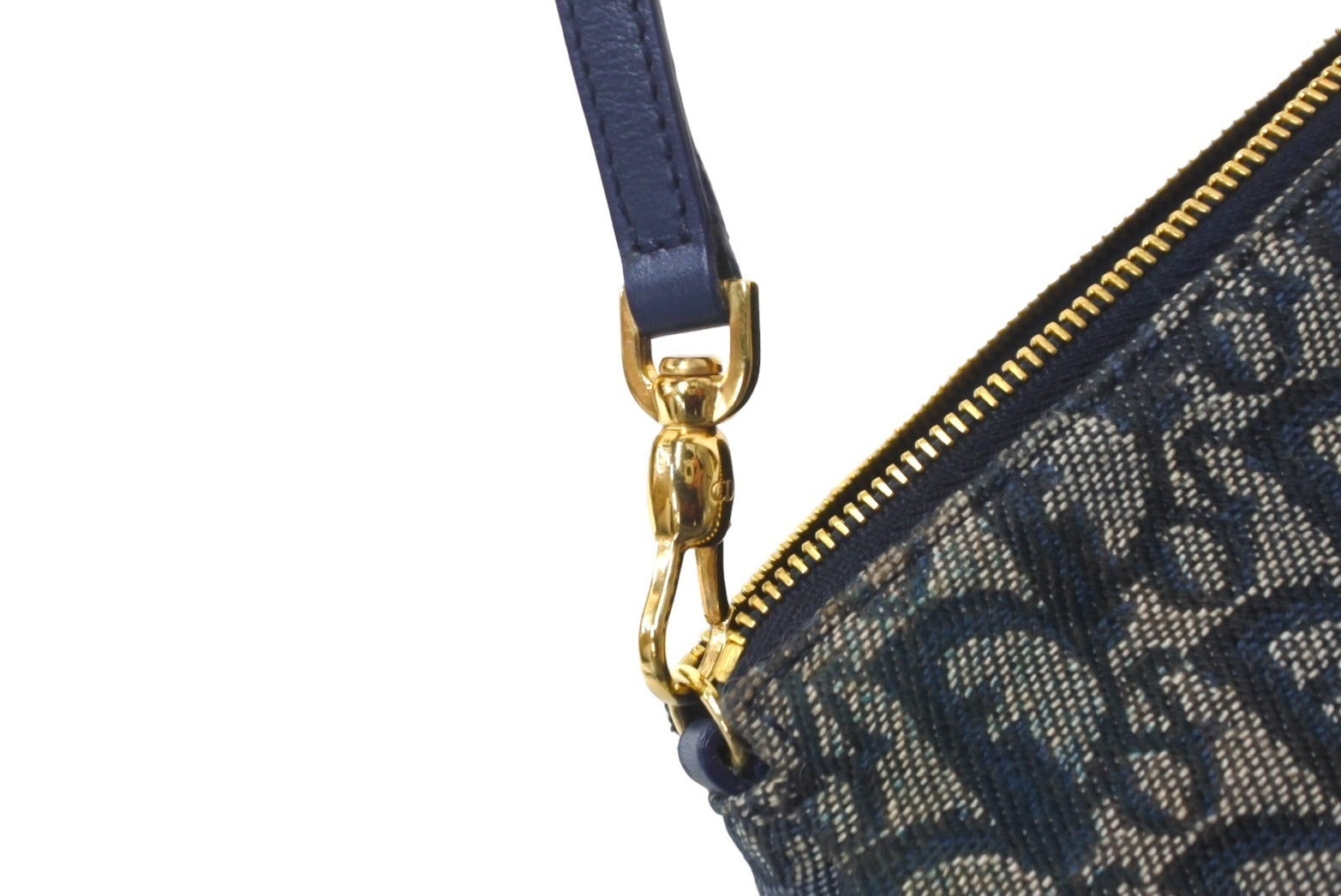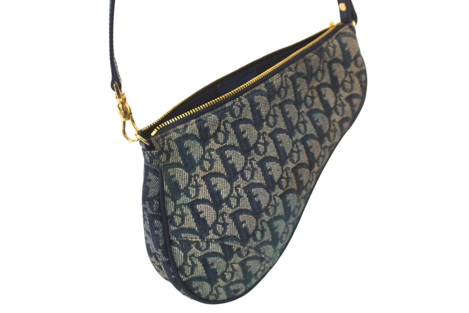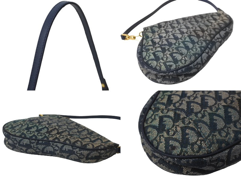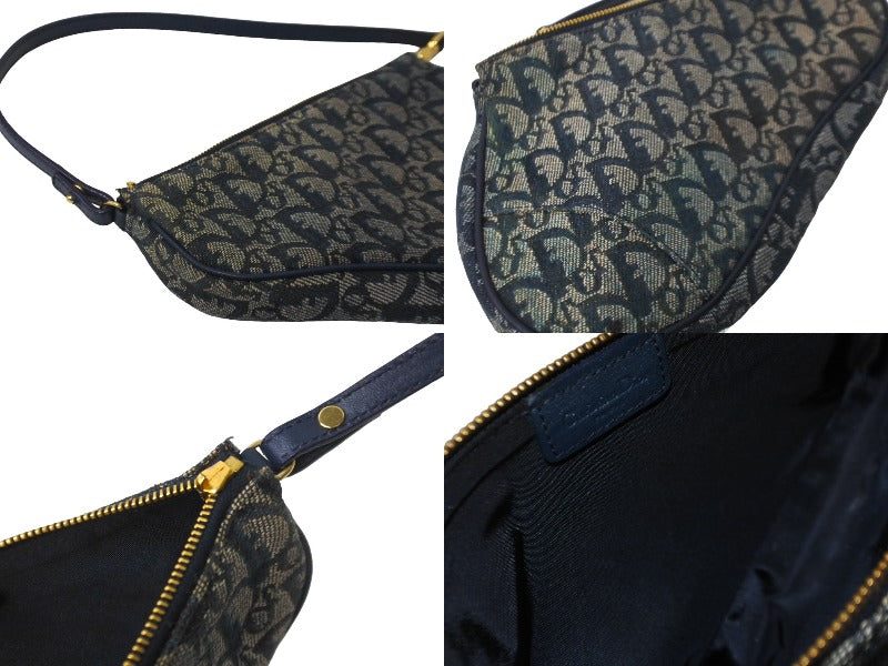 Christian Dior クリスチャンディオール ワンショルダーバッグ サドルポーチ トロッター MC1011 ネイビー ゴールド金具 良品 中古 62694