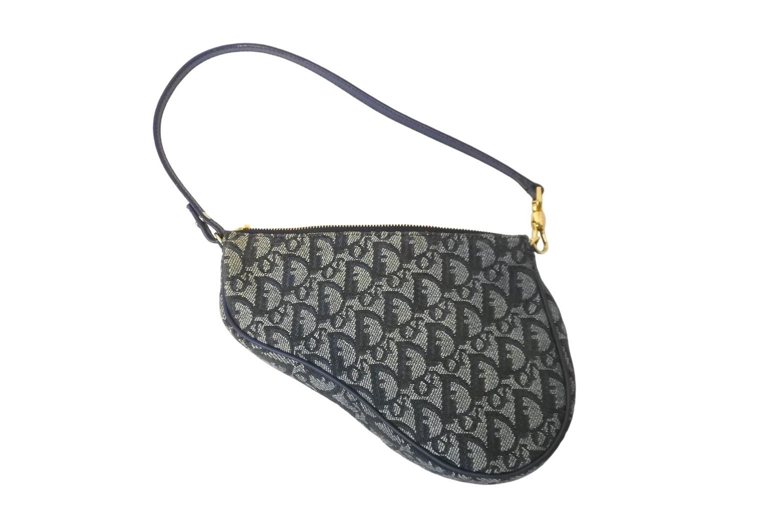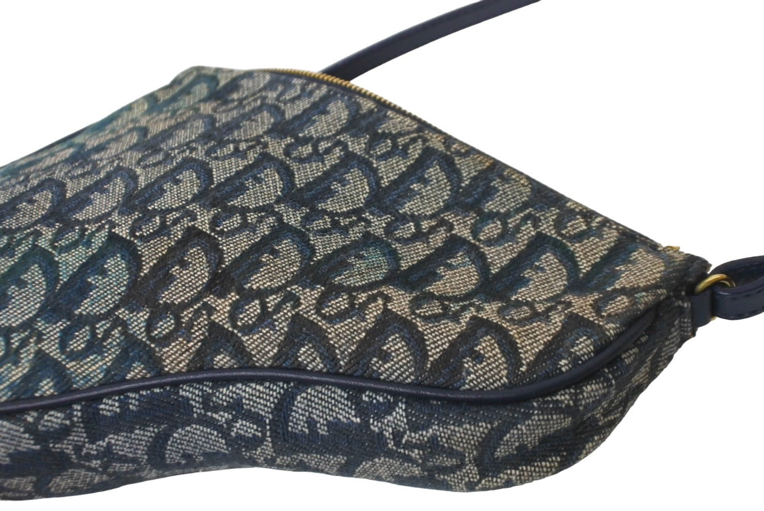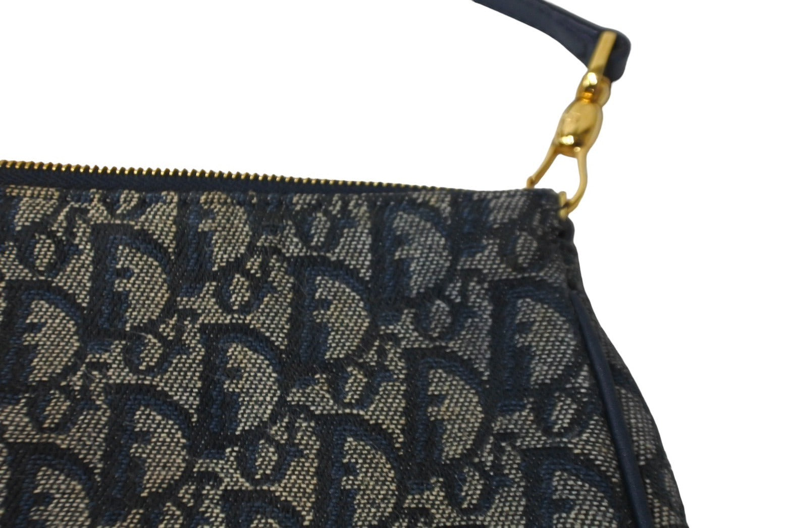 Christian Dior クリスチャンディオール ワンショルダーバッグ サドルポーチ トロッター MC1011 ネイビー ゴールド金具 良品 中古 62694