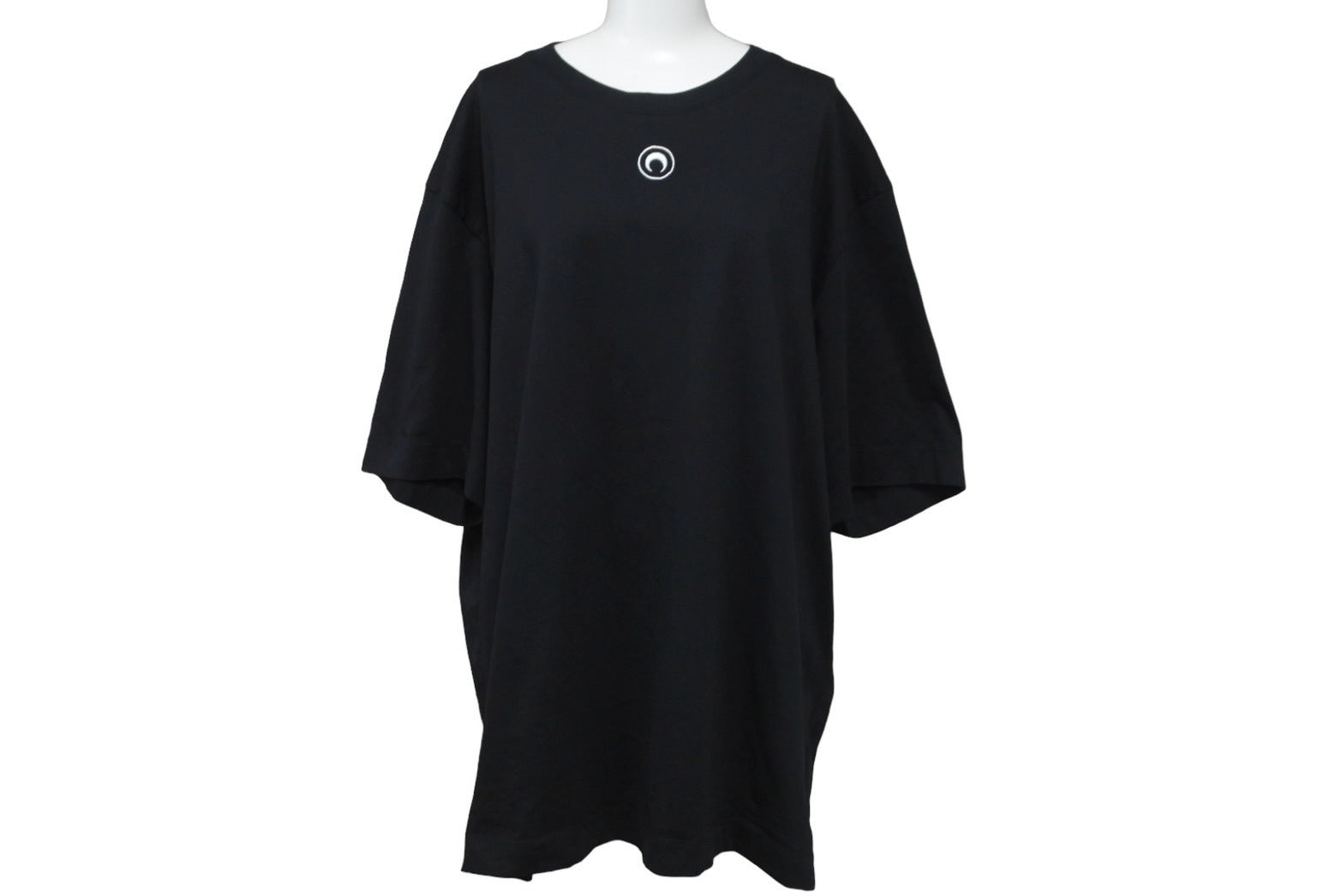 極美品 MARINE SERRE マリーンセル Crescent Moon 半袖Tシャツ サイズXXL ブラック コットン 刺繍 ブランドロゴ 中古 63084
