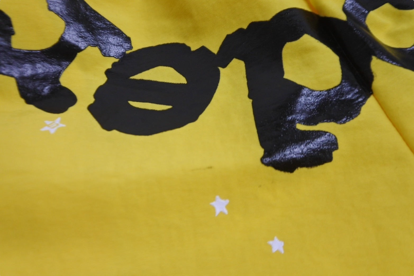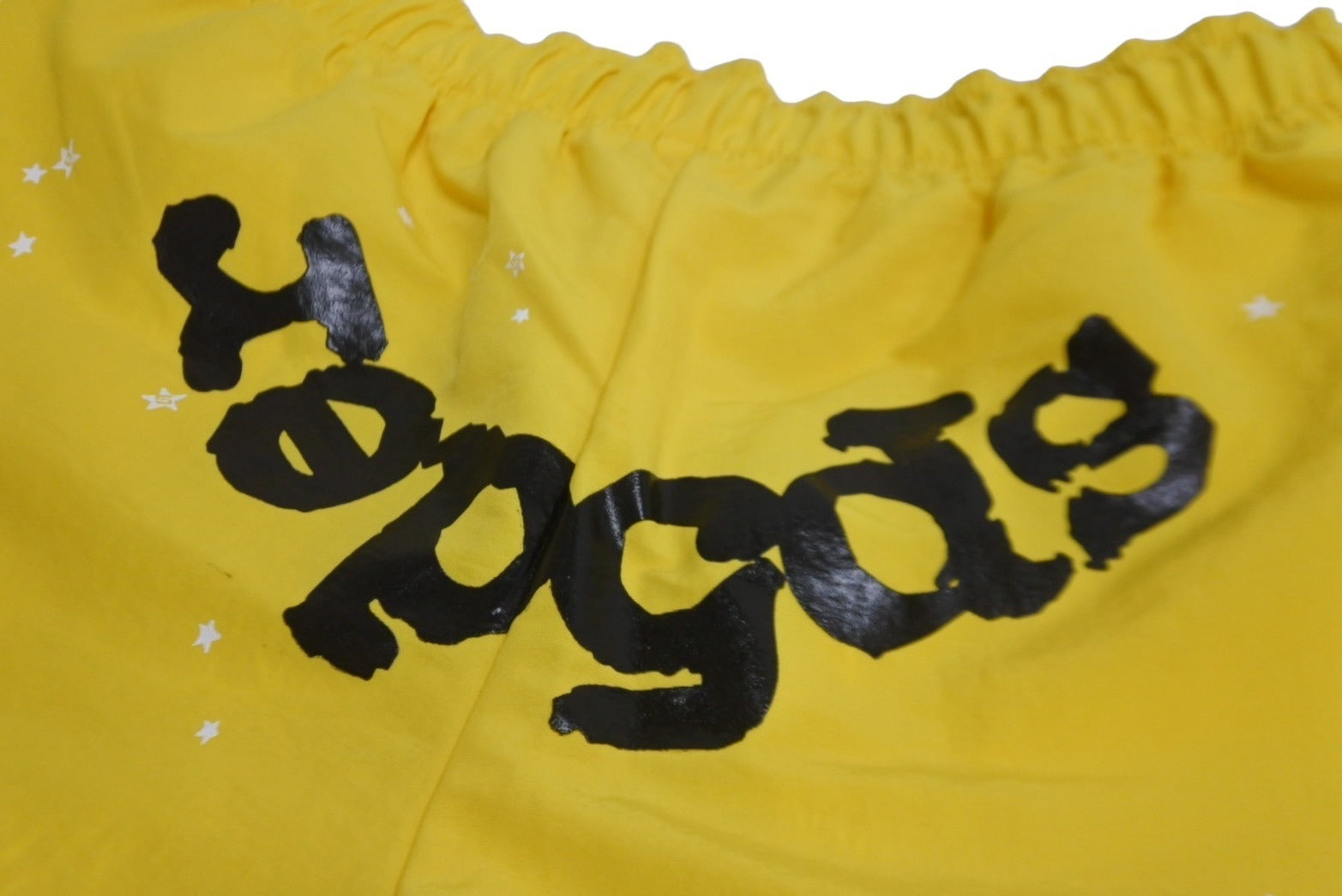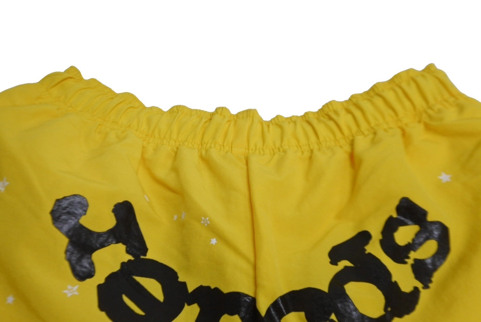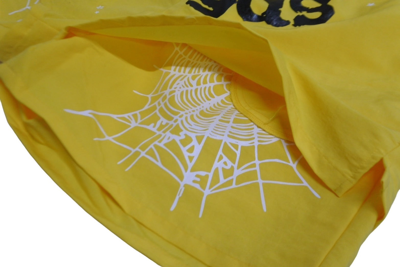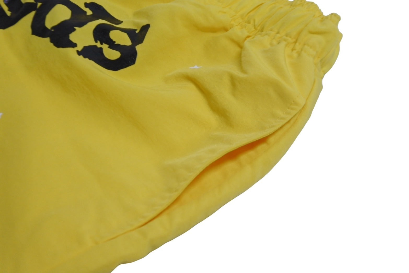 Sp5der スパイダー ダブルレイヤード プリント ショートパンツ イエロー ナイロン クモ 蜘蛛 ナイロン サイズM 美品 中古 63575