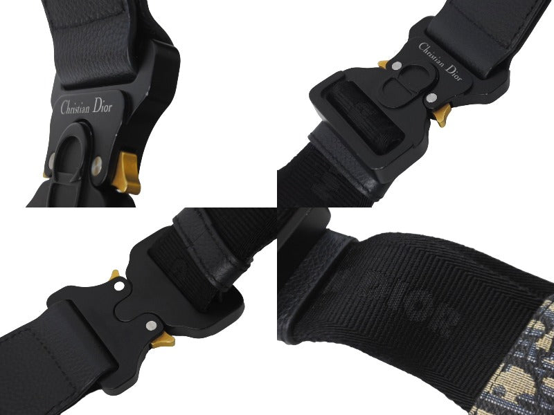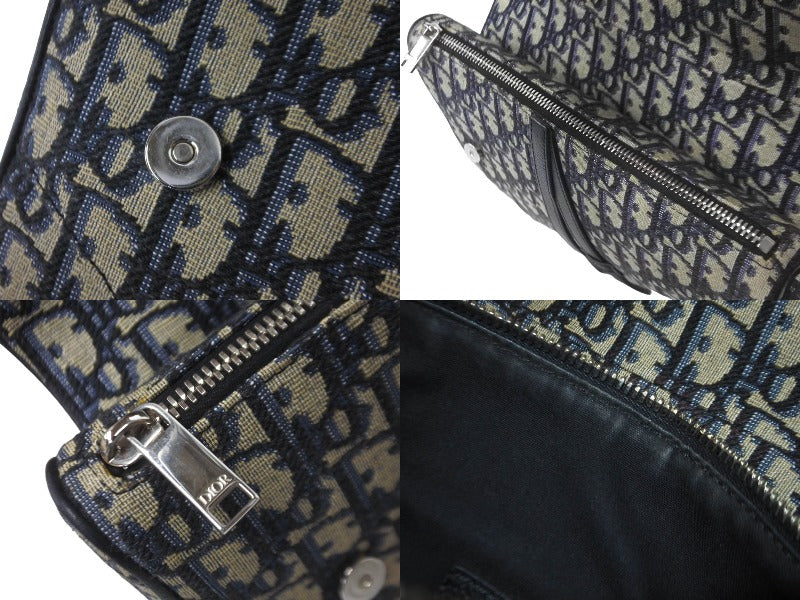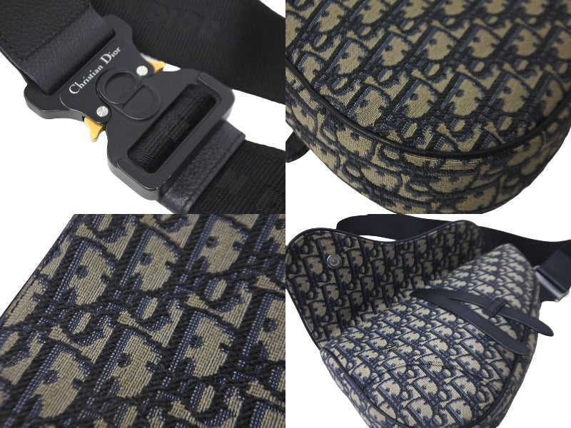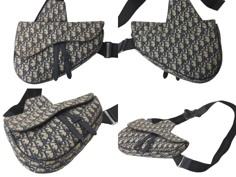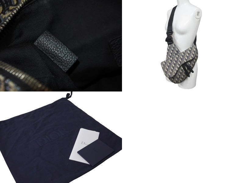 Dior ディオール サドルバッグ ボディバッグ 1ADP0093YKY オブリーク ベージュネイビー シルバー金具 美品 中古 63924