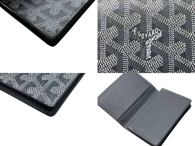 極美品 GOYARD ゴヤール マルゼルブ カードケース ヘリンボーン柄 グレー ゴヤールディンキャンバス カーフスキン 中古 67087