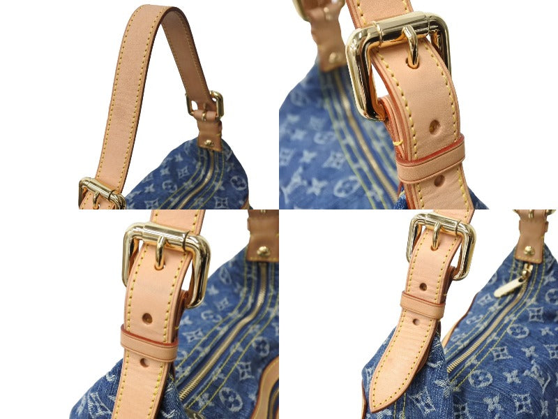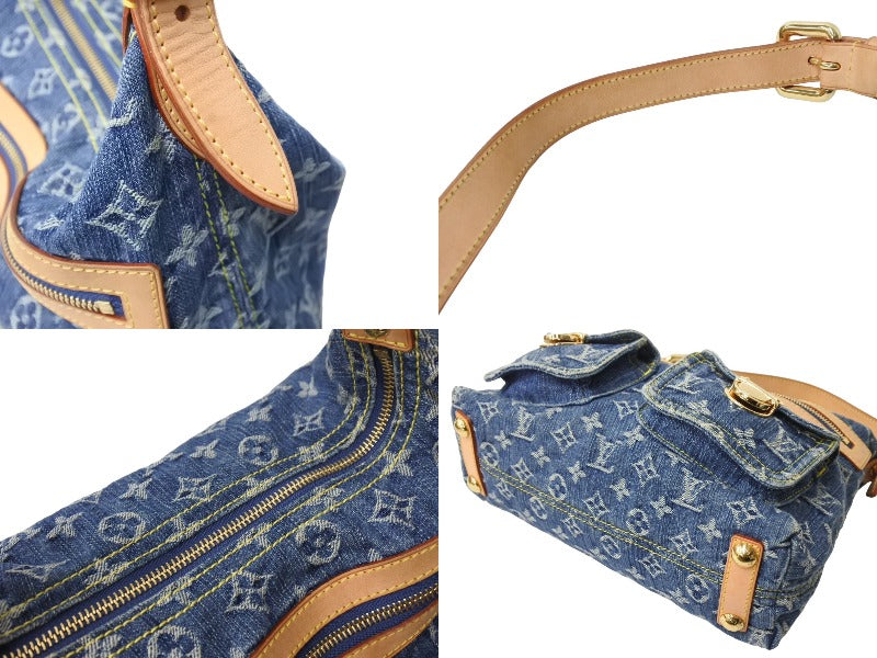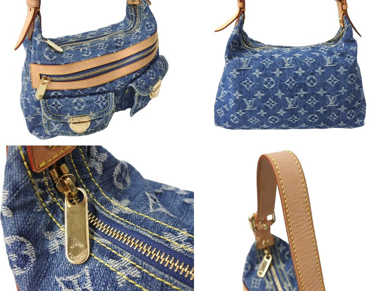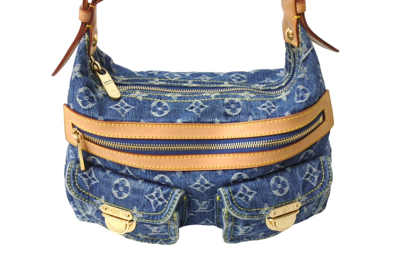 新品同様 LouisVuitton ルイヴィトン バギーPM ショルダーバッグ M95049 FL0047 モノグラムデニム ヌメ革 ブルー ゴールド 中古 67546