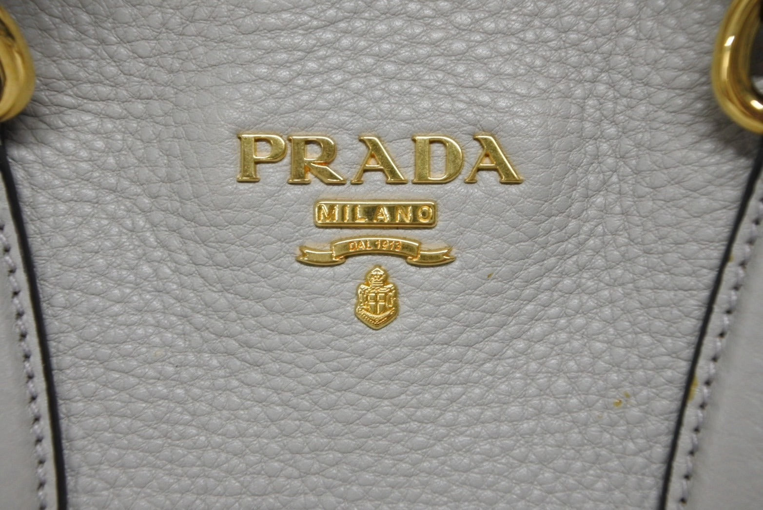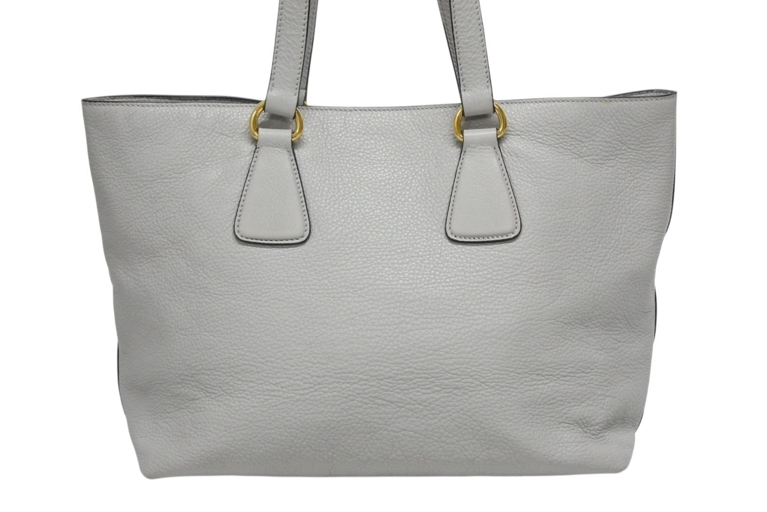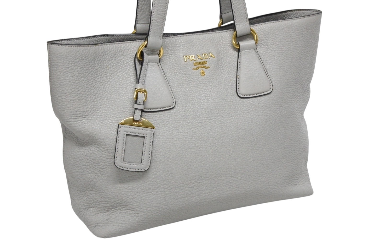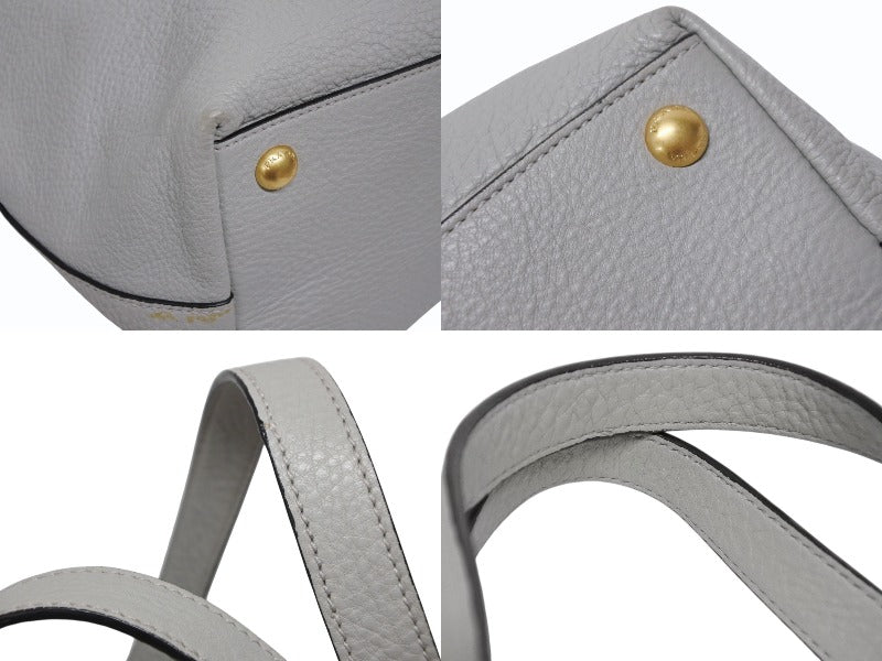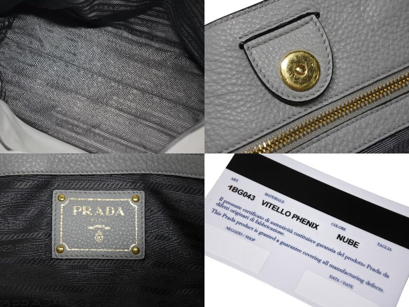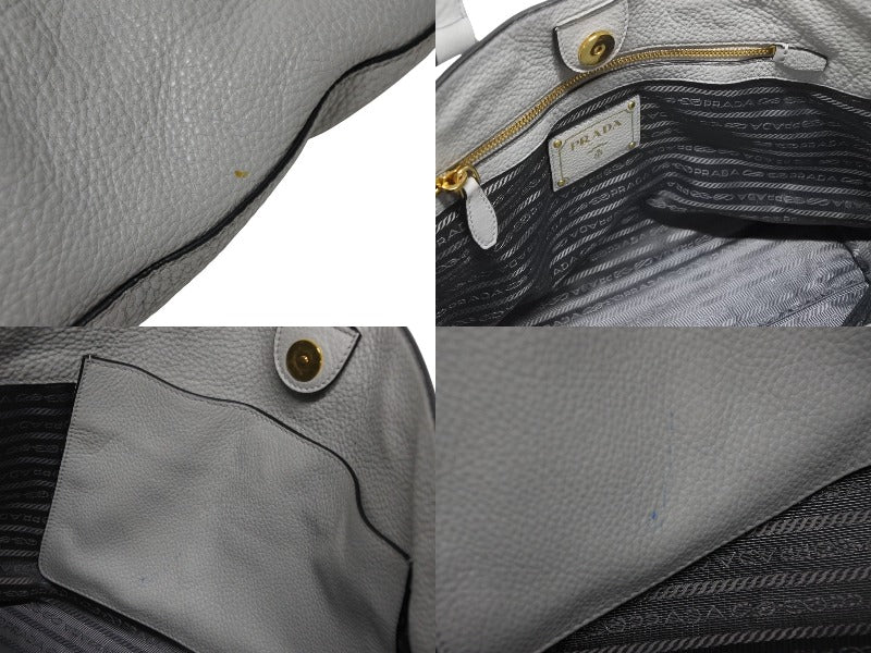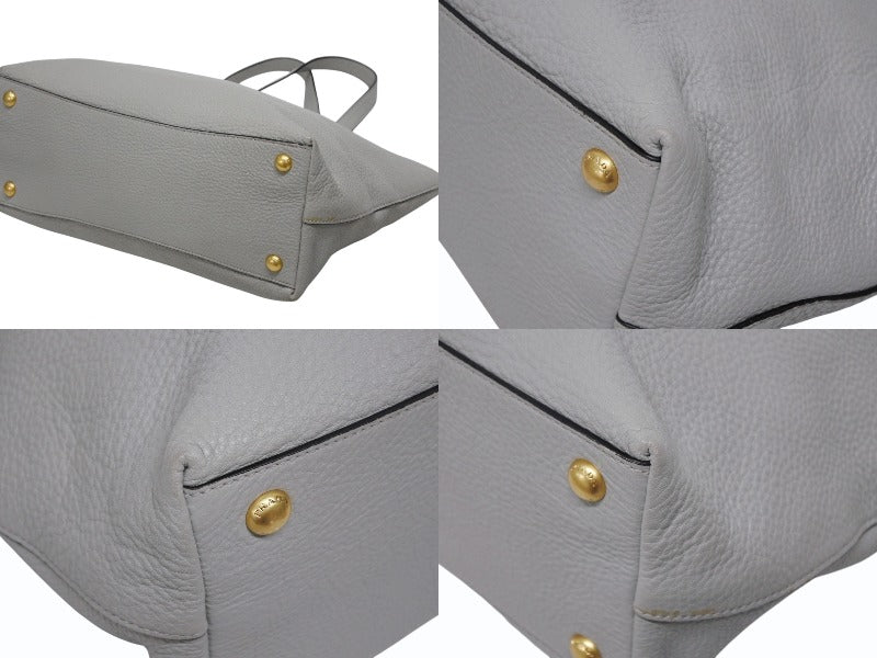 PRADA プラダ トートバッグ ブランドロゴ 1BG043 ルーマニア製 レザー グレー ゴールド金具 美品 中古 4b009063