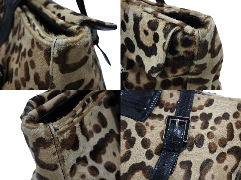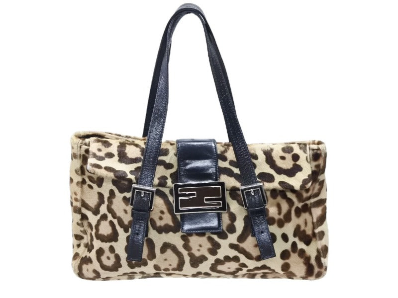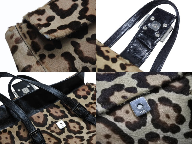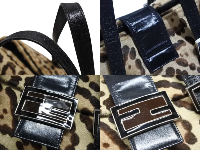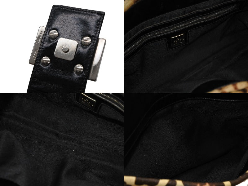 FENDI フェンディ ハンドバッグ 26572 ジャガーパターン ハラコ レザー ブラウン ベージュ ブラック シルバー金具 美品 中古 4b007937