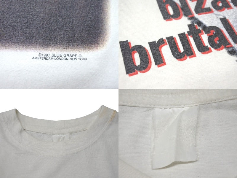 首元汚れあり。全体的に少々黄ばみあり。袖に少々汚れあり。背面下部に汚れ、シミあり。プリントにフェードあり。毛羽立ち、少々の毛玉あり。その他使用感の少ない状態です。