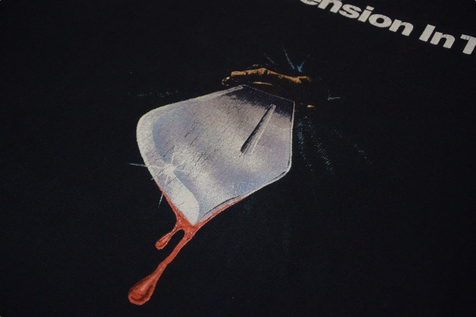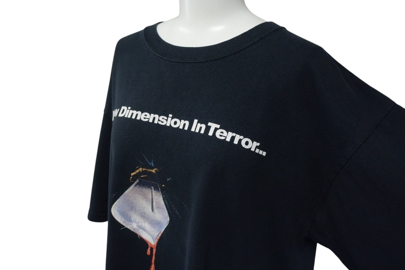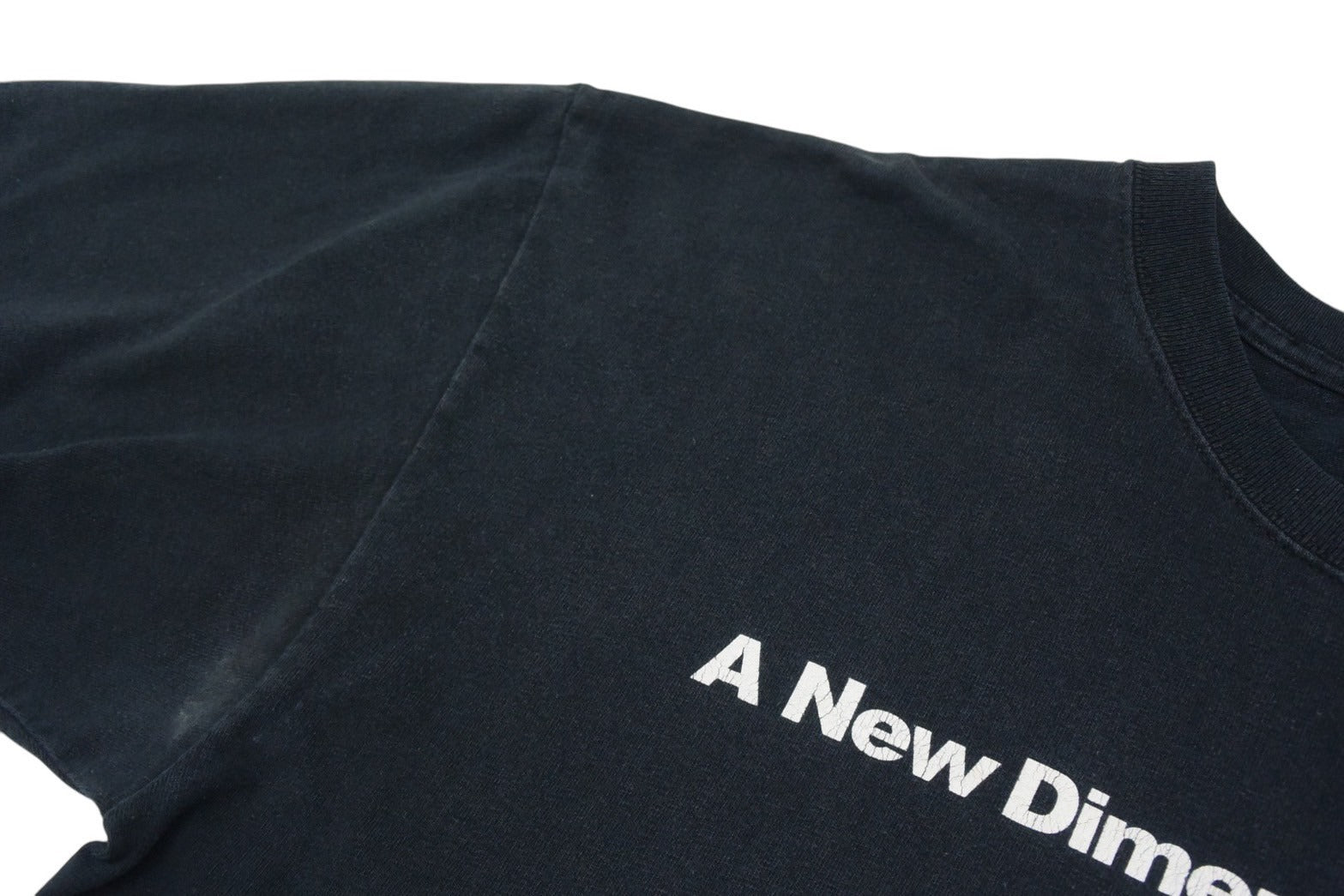 プリントにヒビ割れあり。全体的に色褪せ、毛羽立ちあり。首元にほつれあり。サイズタグ無し。その他使用感の少ない状態です。
