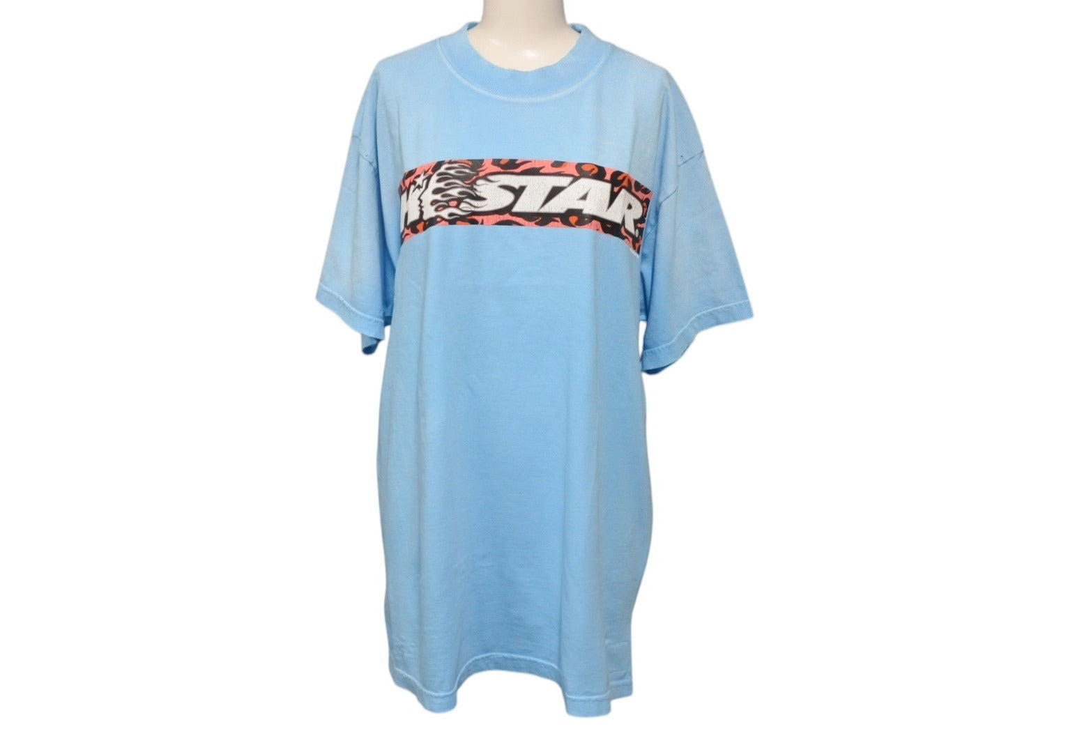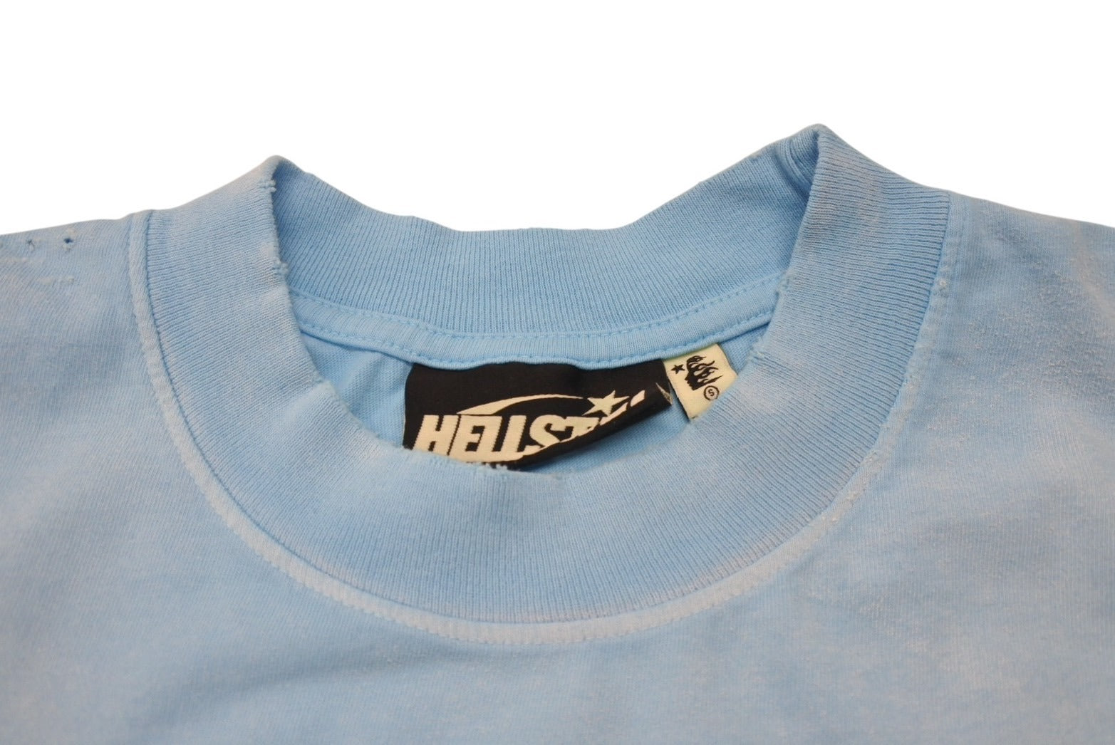 未使用 HELLSTAR ヘルスター ボックスロゴ 半袖Tシャツ ロゴ A3D179BB コットンブルー サイズS 中古 4c076153