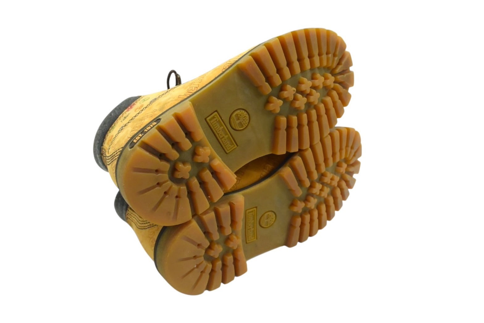 TIMBERLAND ティンバーランド 6インチブーツ イエローブーツ マルチカラー ロゴ総柄 キッズ サイズ17.5cm 良品 中古 4b000226