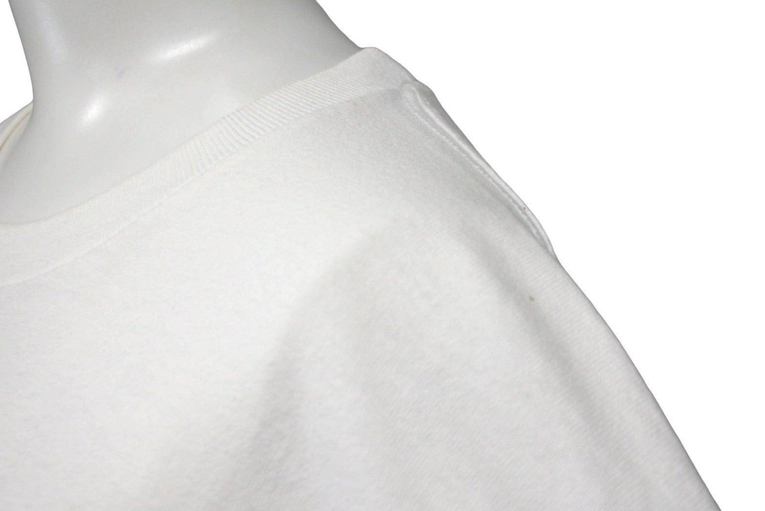 フロント左肩付近に小さい汚れ1箇所あり。フロント下部付近に薄汚れあり。首元黄ばみあり。プリントにフェードあり。その他特に目立つ傷や汚れはございません。