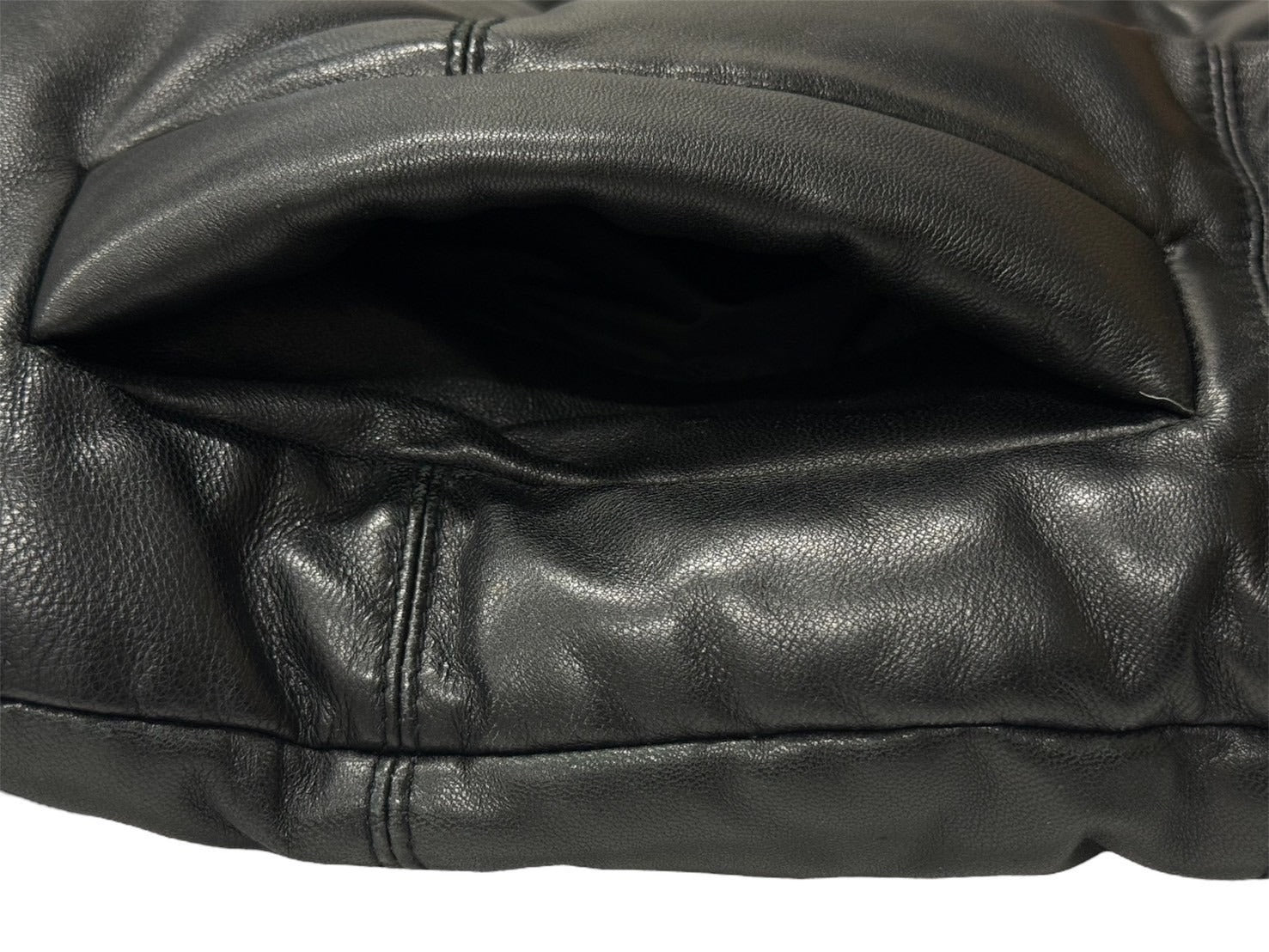 表面、裏面、両袖、裾付近、首元付近にスレあり。右袖にレザー割れあり。中古品としてご使用いただける状態です。