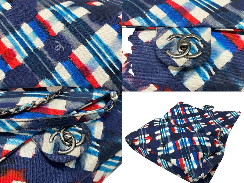 極美品 CHANEL シャネル エアライン キャンバス マルチカラー Wフラップ Wチェーンショルダーバッグ 22番台 中古 4b007318