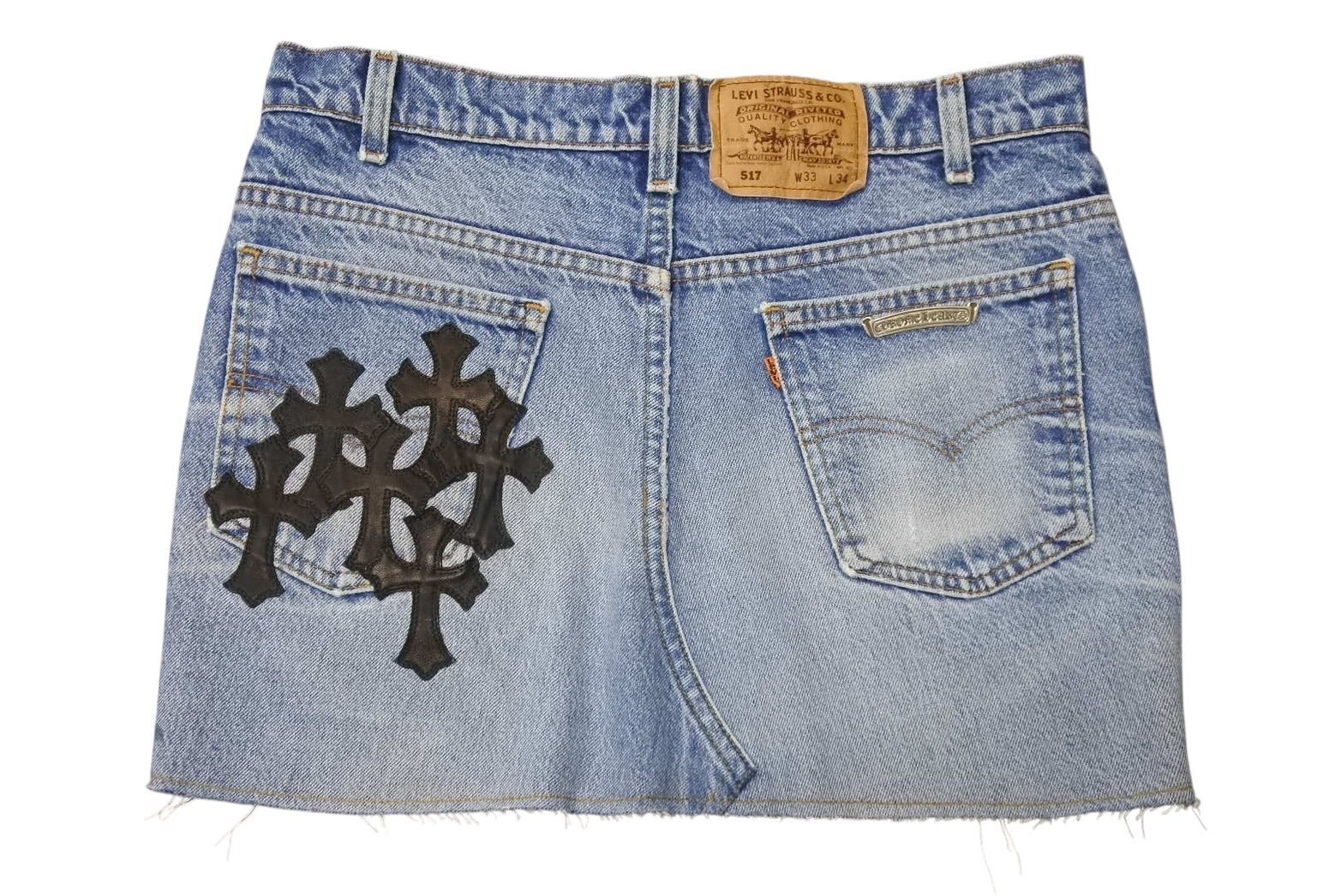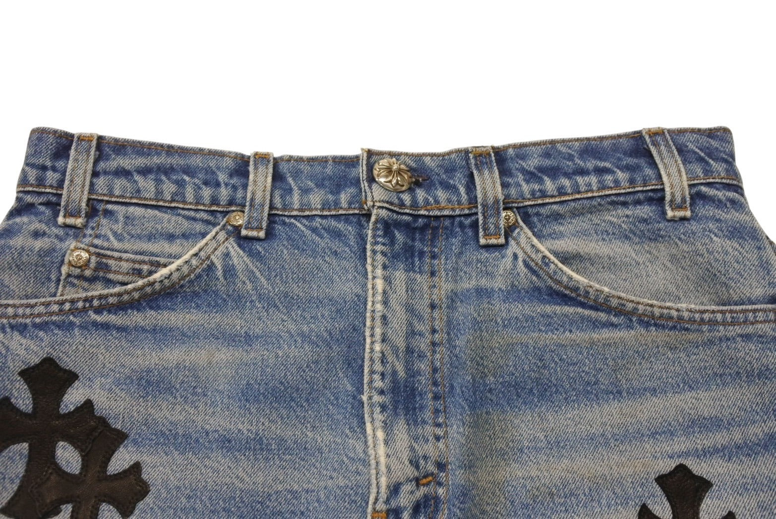 未使用 CHROME HEARTS クロムハーツ × Levi's リーバイス セメタリークロスパッチ デニムミニスカート サイズ26 10パッチ 中古 4b006403