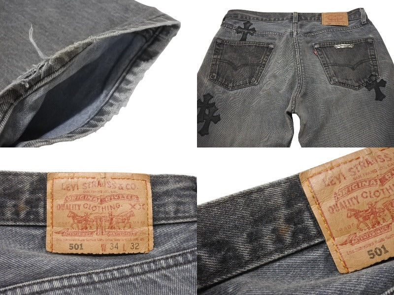 CHROME HEARTS クロムハーツ セメタリー クロスパッチ デニムパンツ リーバイス LEVI`S 501 サイズ31 ブラック 美品 中古 4b006561