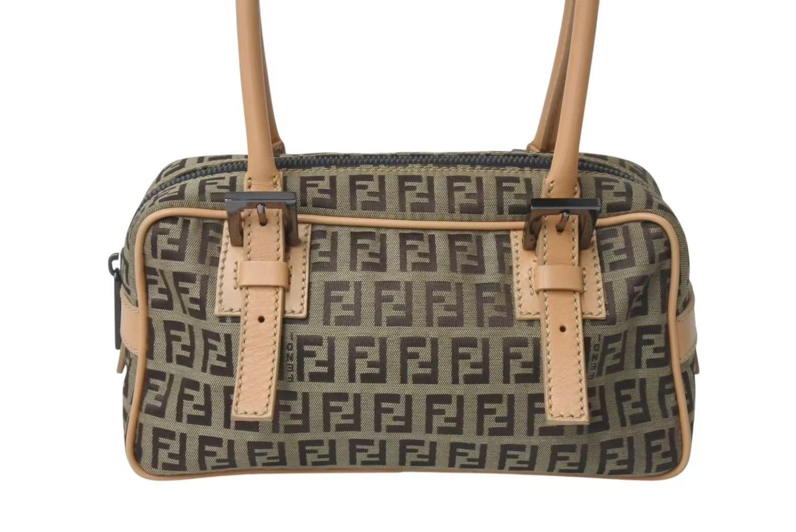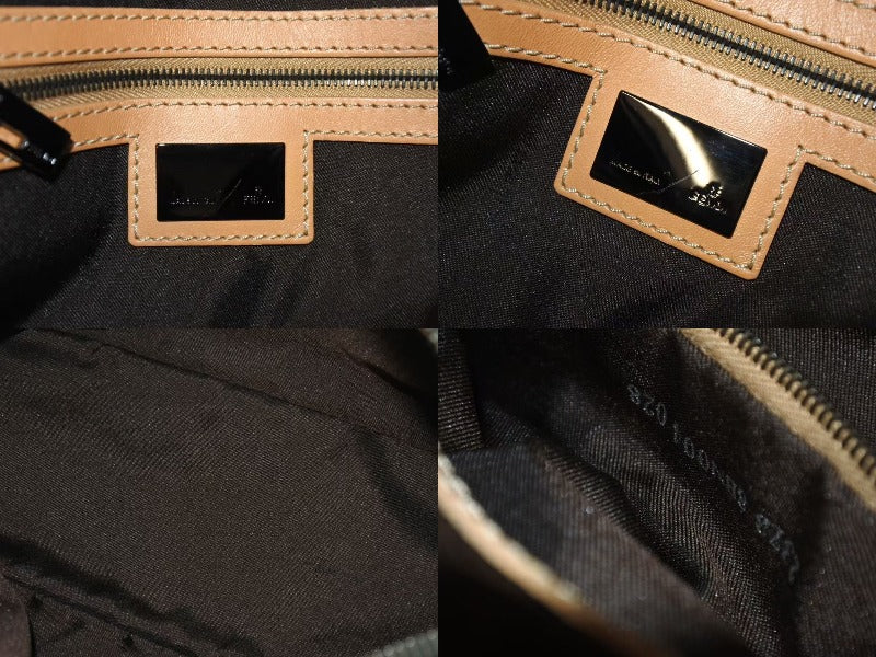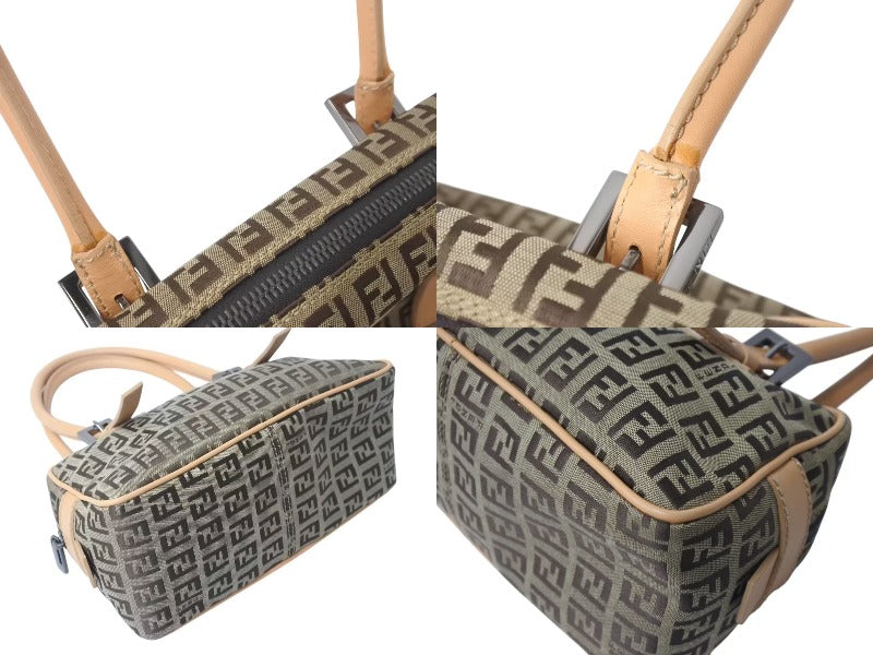 FENDI フェンディ ハンドバッグ ズッキーノ キャンバス レザー ベージュ ブラウン ブラック金具 8BN004 美品 中古 4c073590