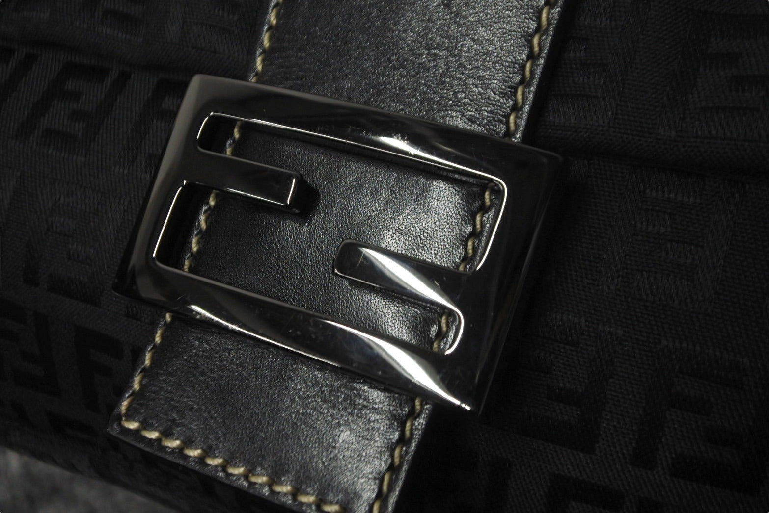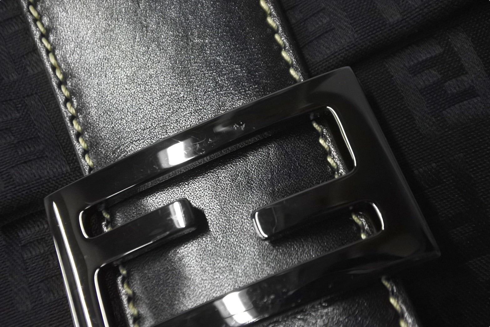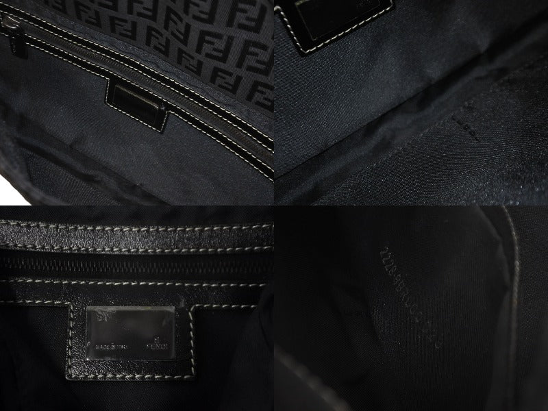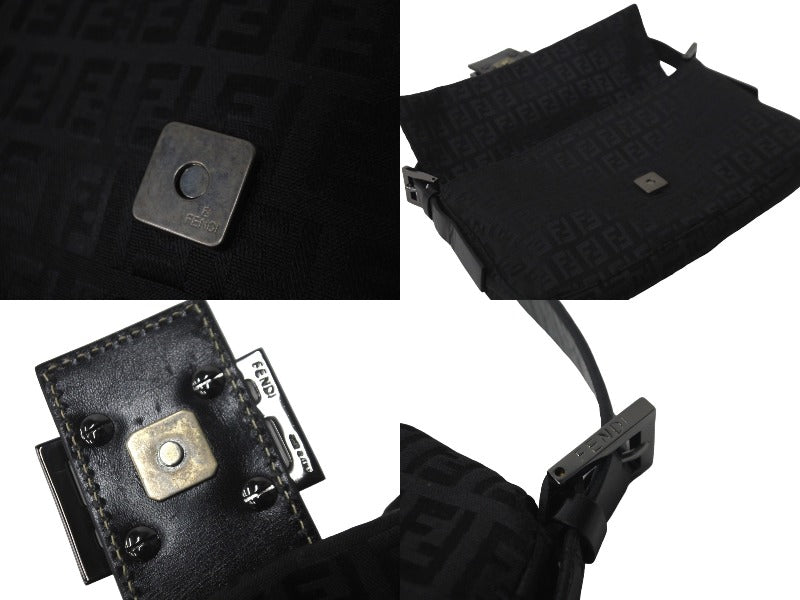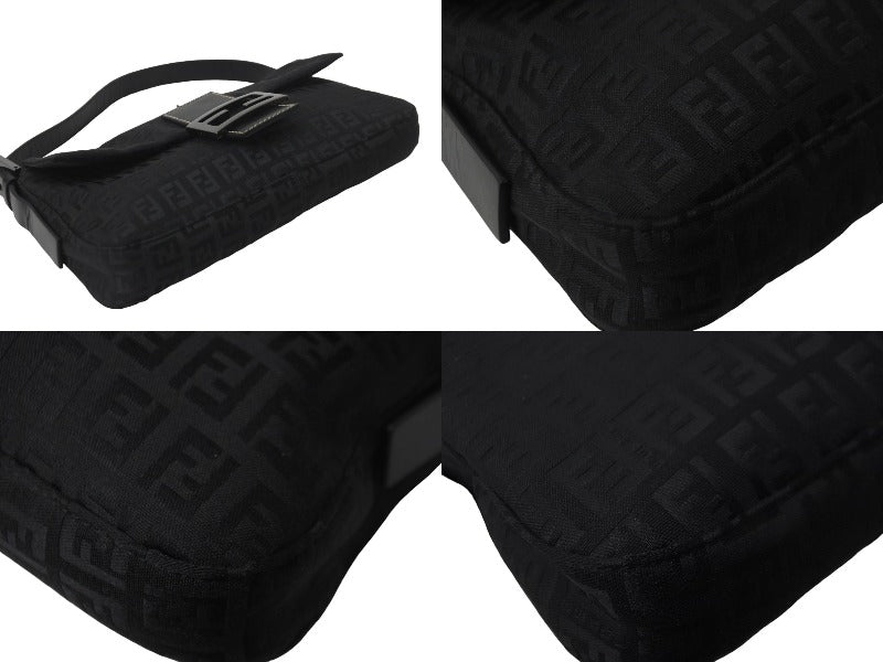 FENDI フェンディ ズッカ柄 マンマバケット ワンショルダーバッグ ブラックロゴ コットンキャンバス レザー 美品 中古 57477
