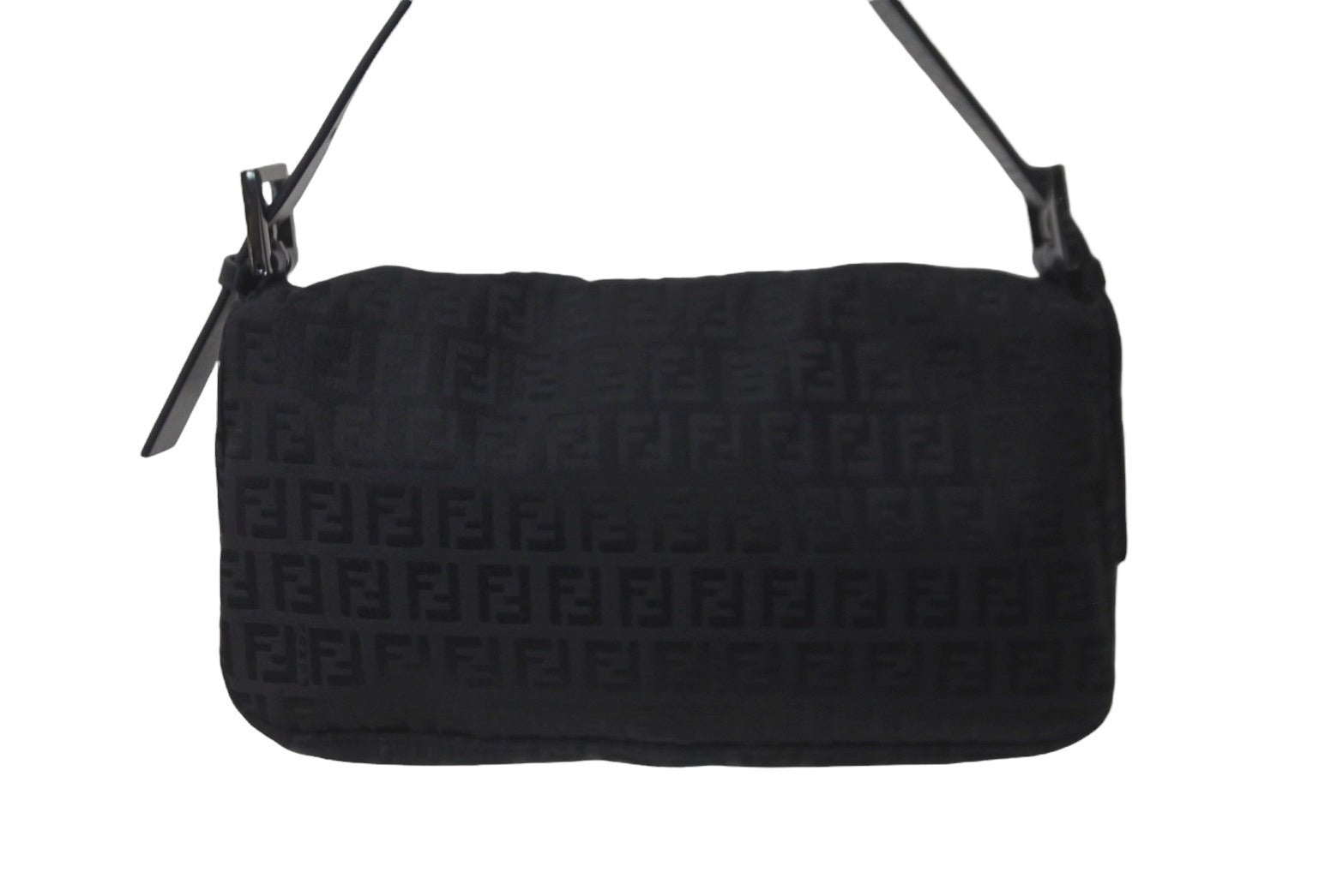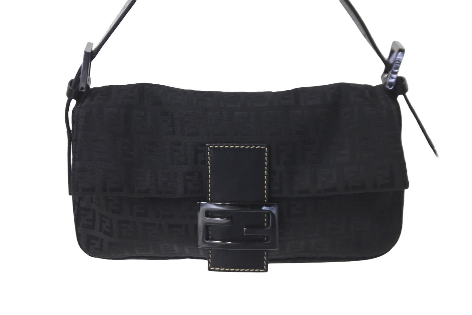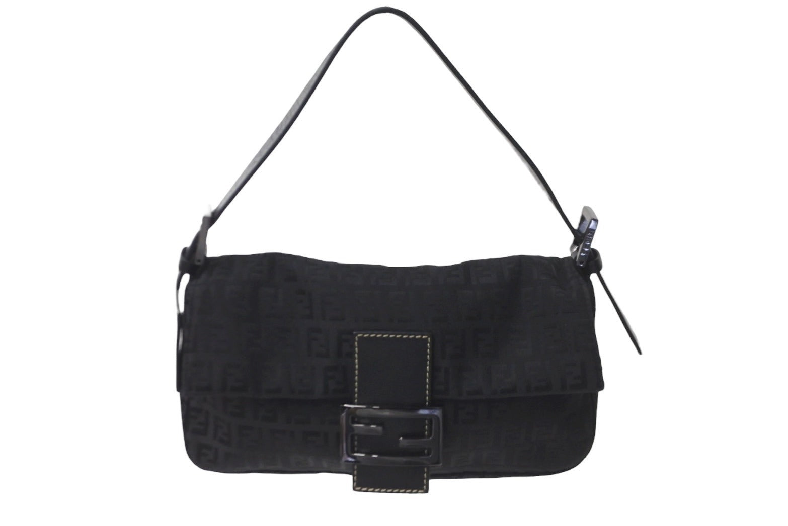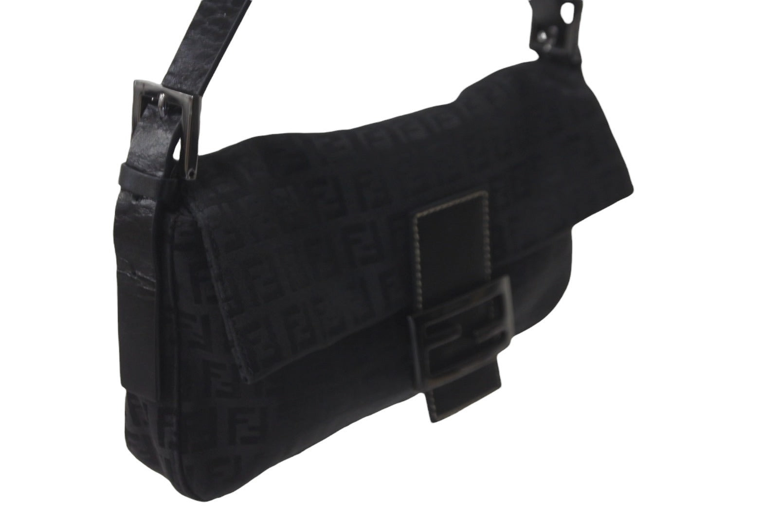 FENDI フェンディ ズッカ柄 マンマバケット ワンショルダーバッグ ブラックロゴ コットンキャンバス レザー 美品 中古 57477