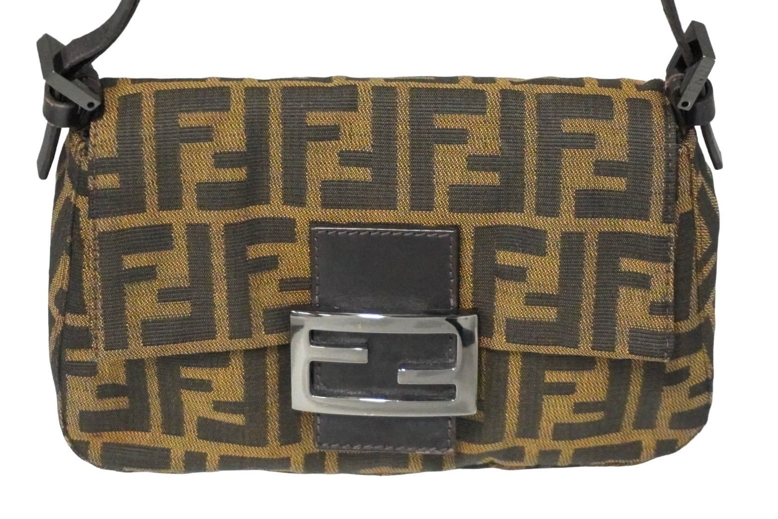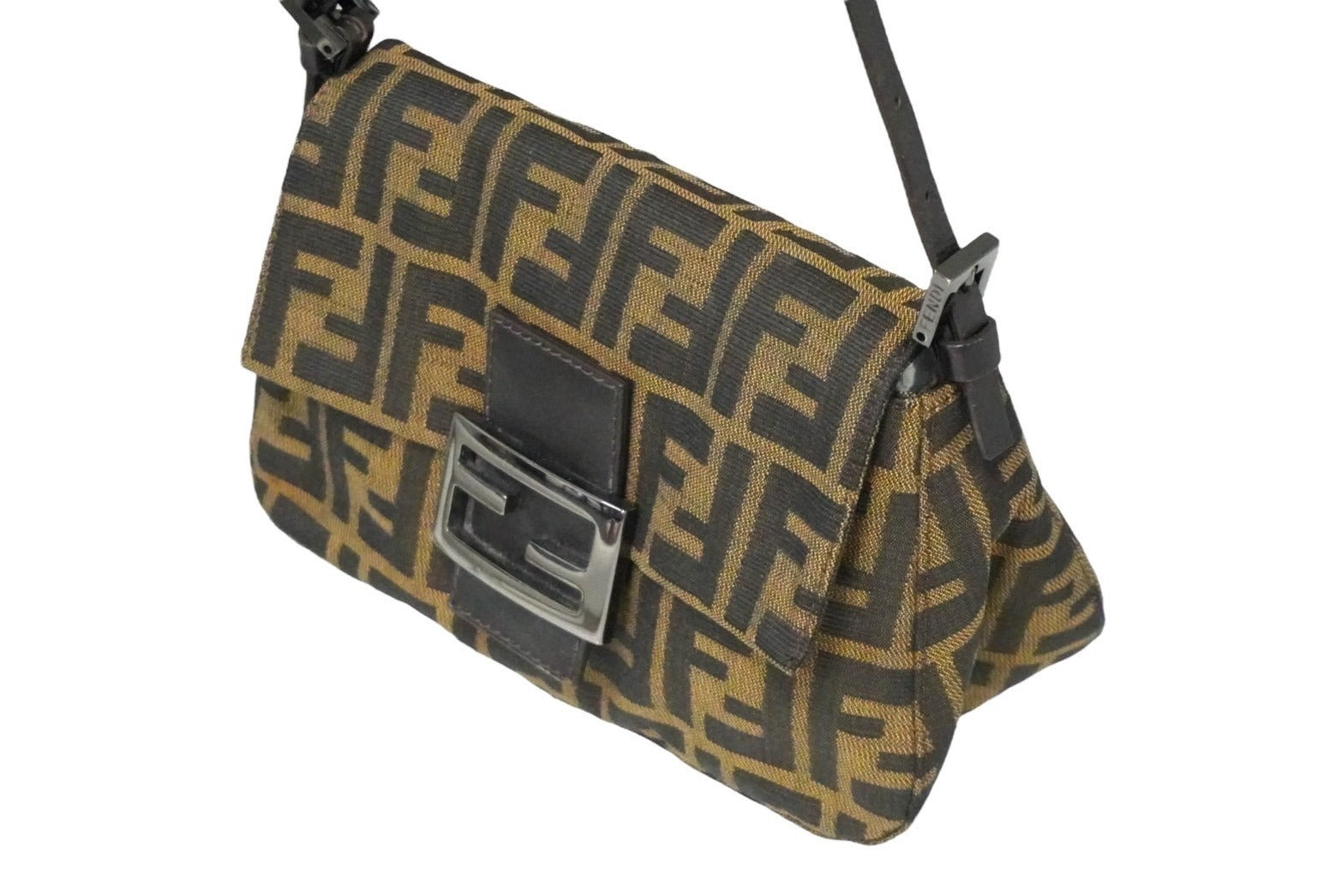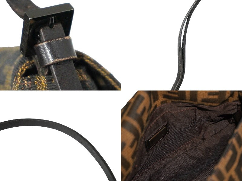 FENDI フェンディ ハンドバッグ マンマバケット ズッカ柄 キャンバス レザー ブラウン 良品 中古 58414