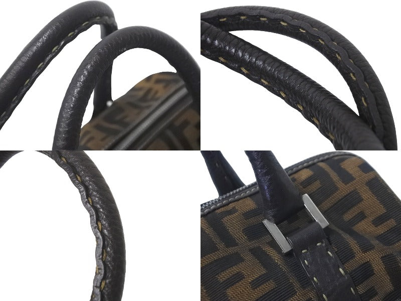 FENDI フェンディ ボストンバッグ ハンドバッグ ズッカ コットンキャンバス レザー ブラウン シルバー金具 美品 中古 58553