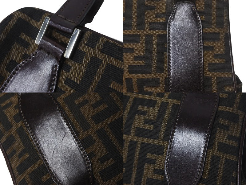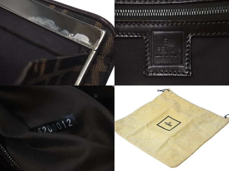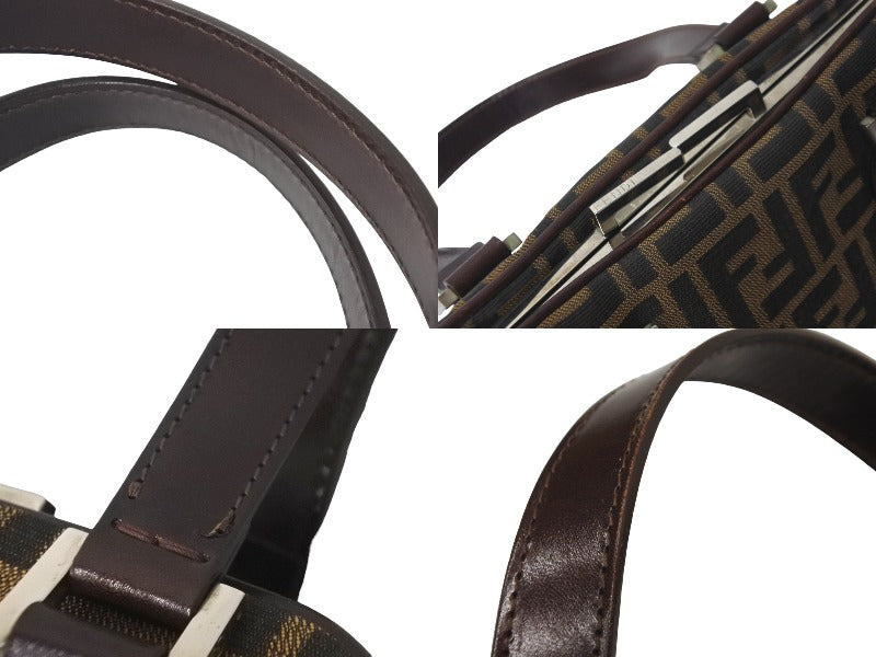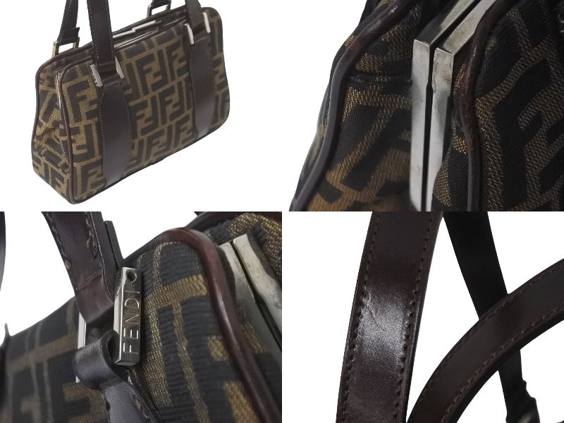 FENDI フェンディ ハンドバッグ スクエアバッグ ズ柄ッカがま口キャンバス ブラウン シルバー金具 レディース 美品 中古 59322