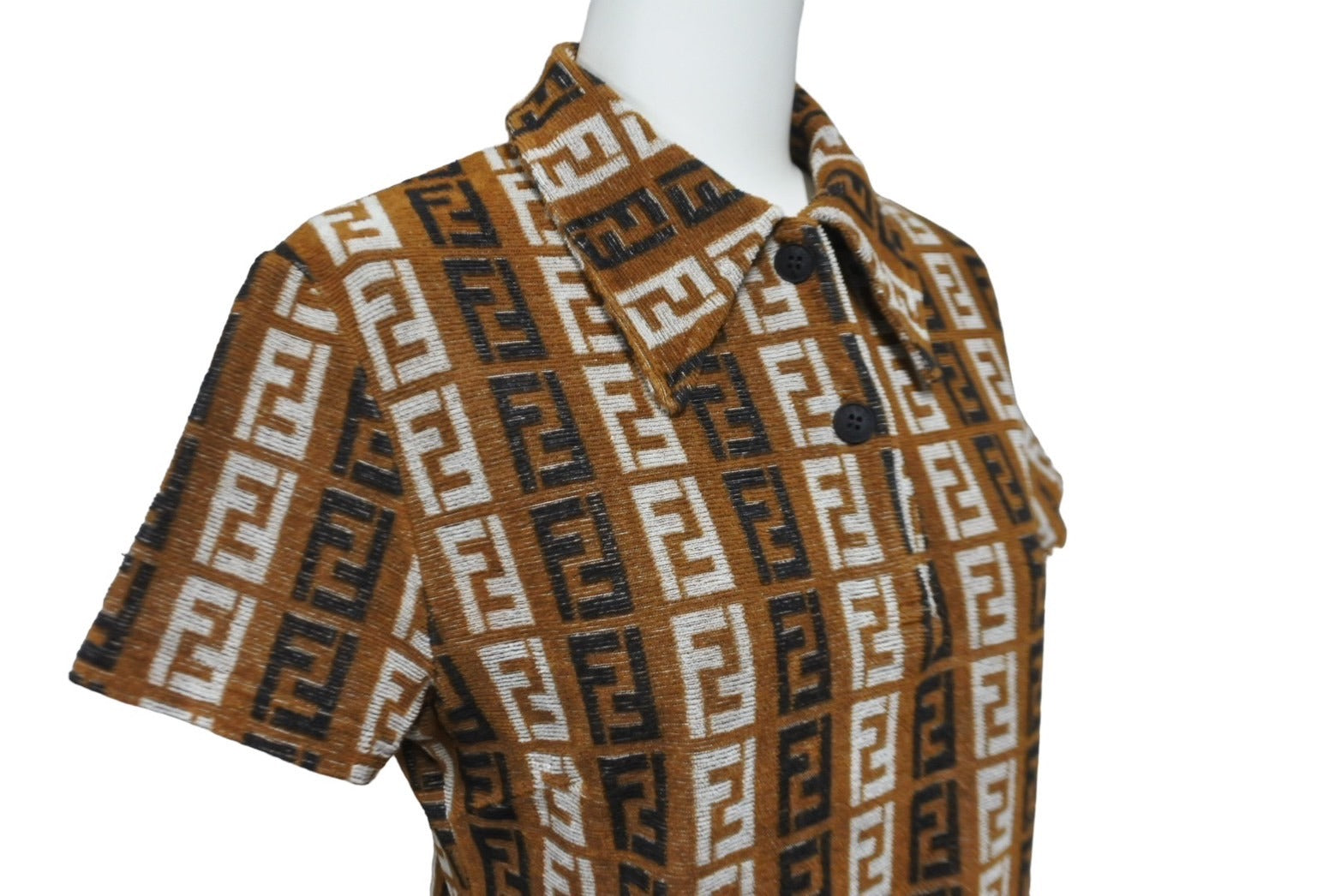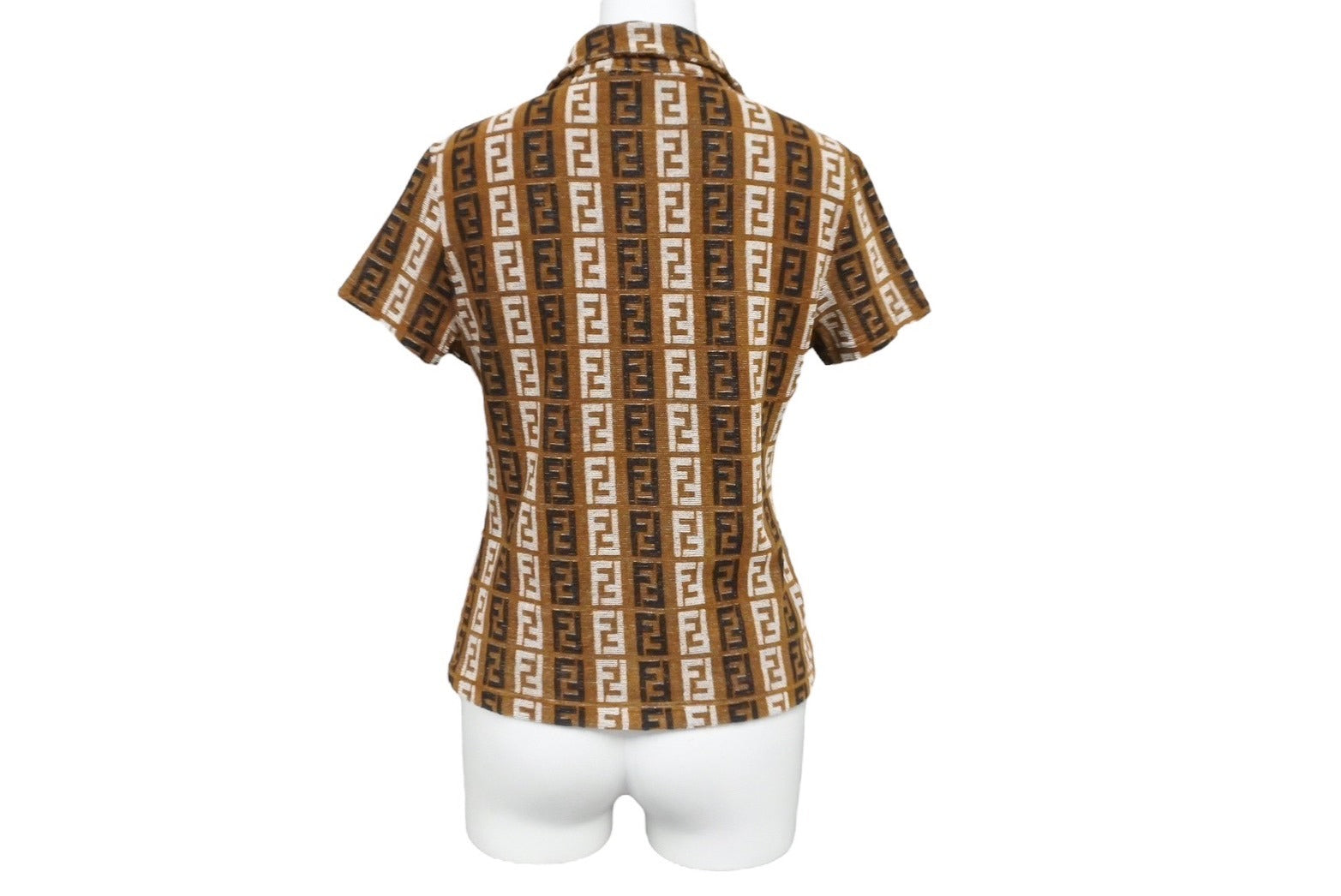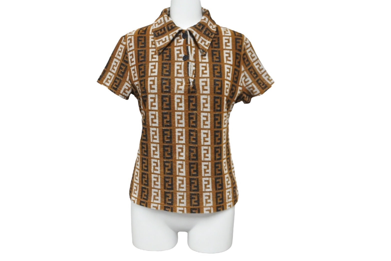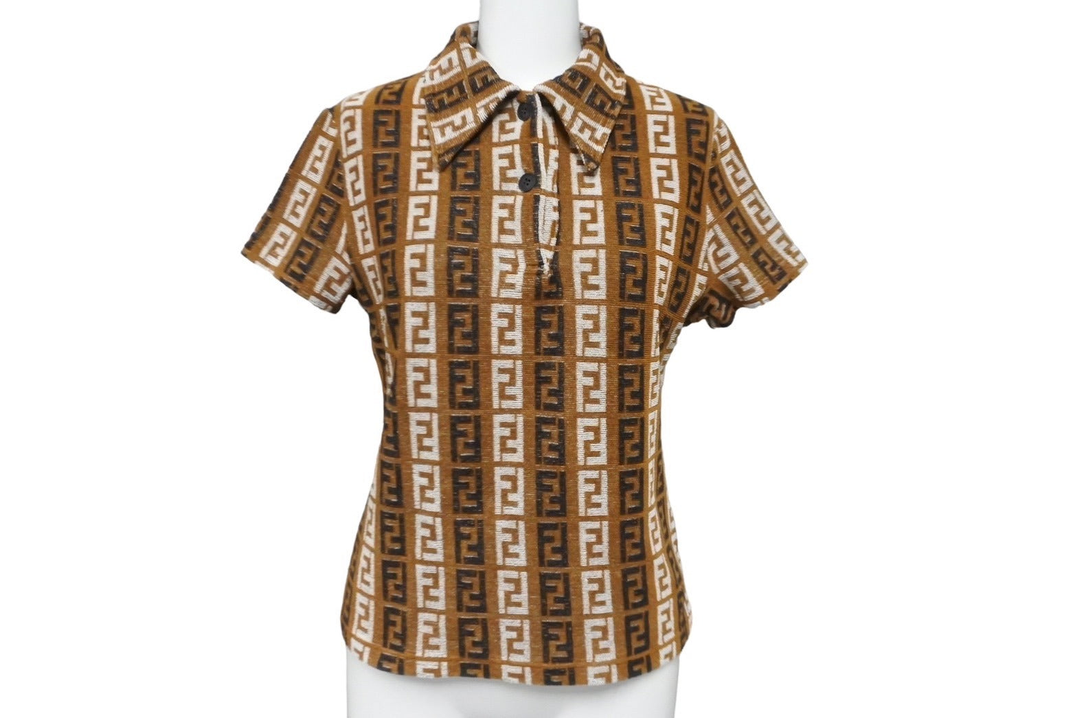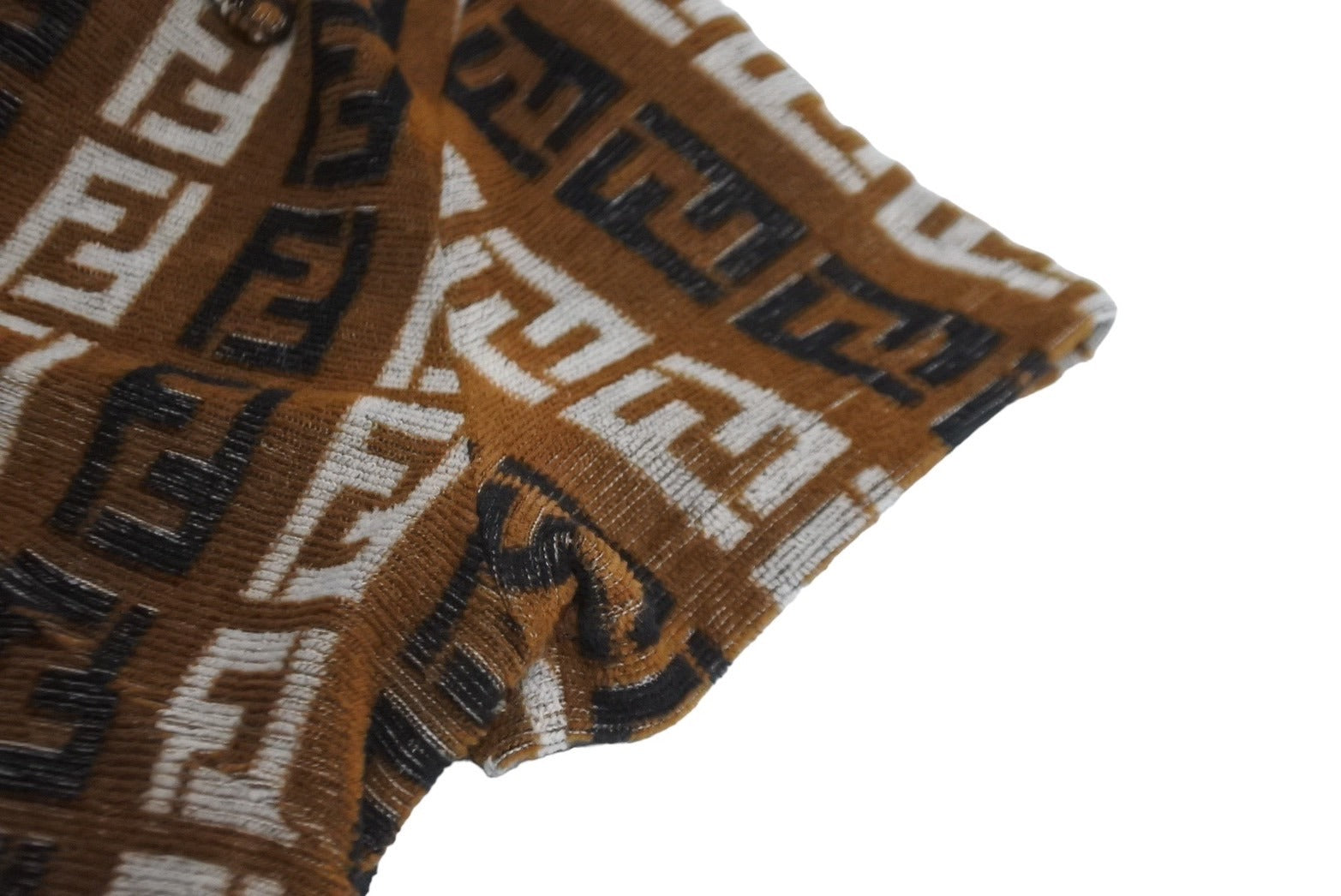 極美品 FENDI フェンディ ポロシャツ サイズ42 ズッカ柄 総柄 パイル生地 コットン ナイロン マルチカラー 中古 62535