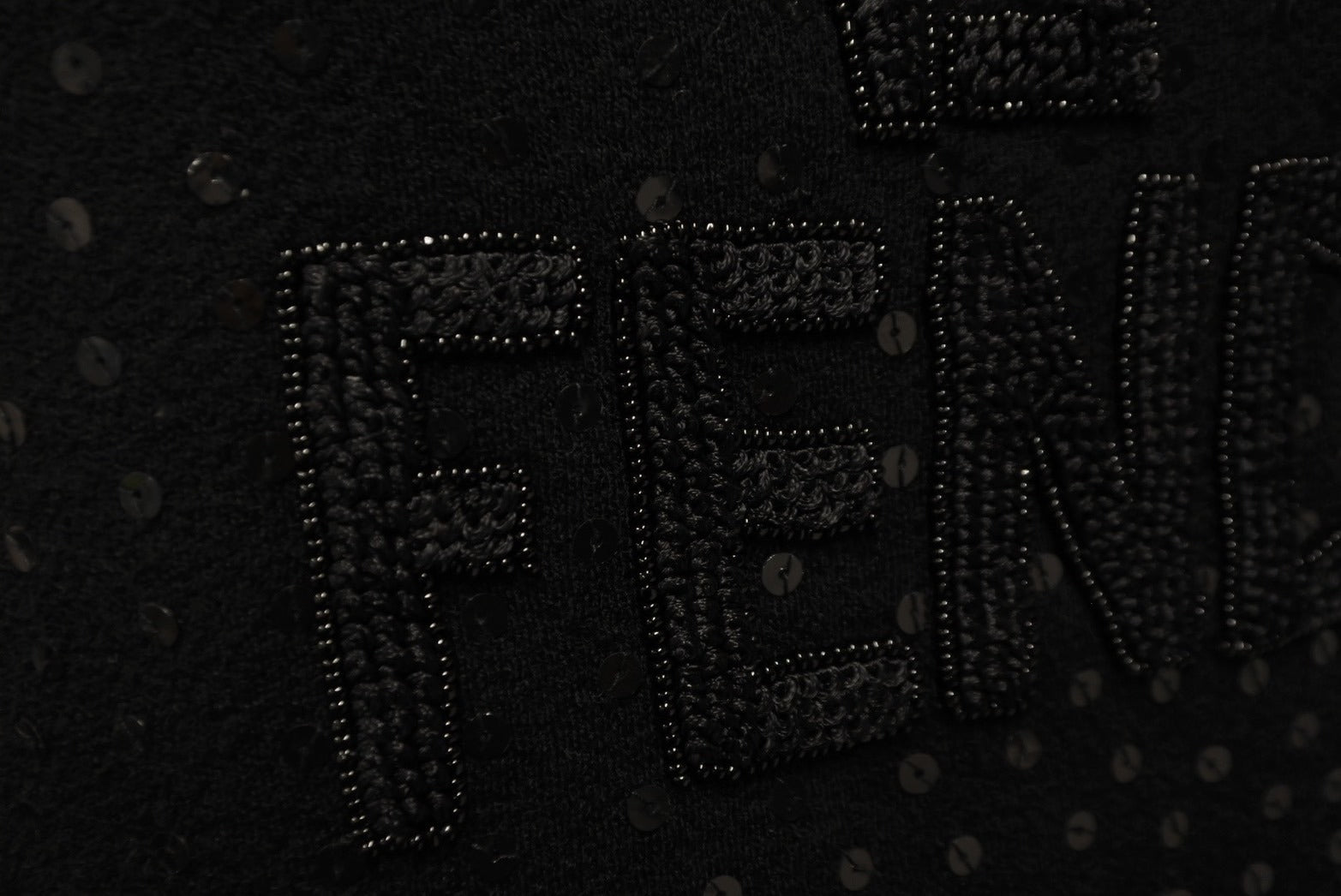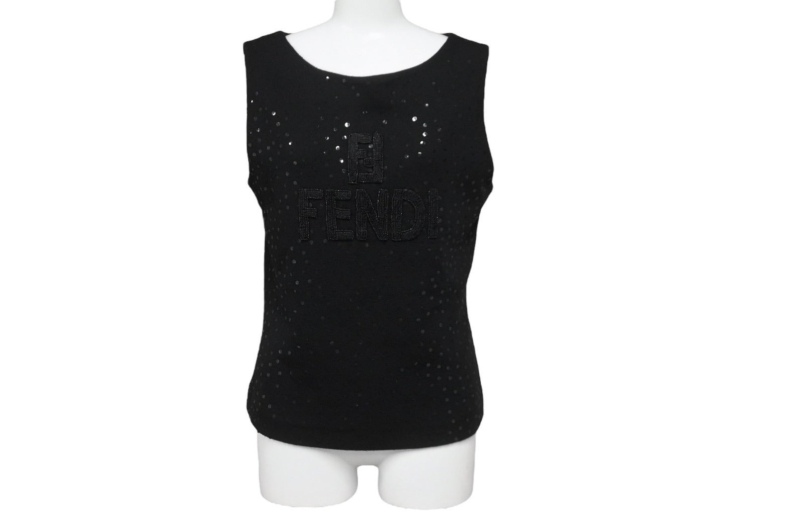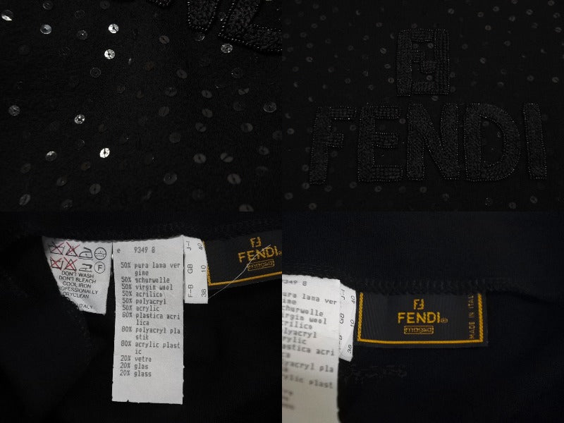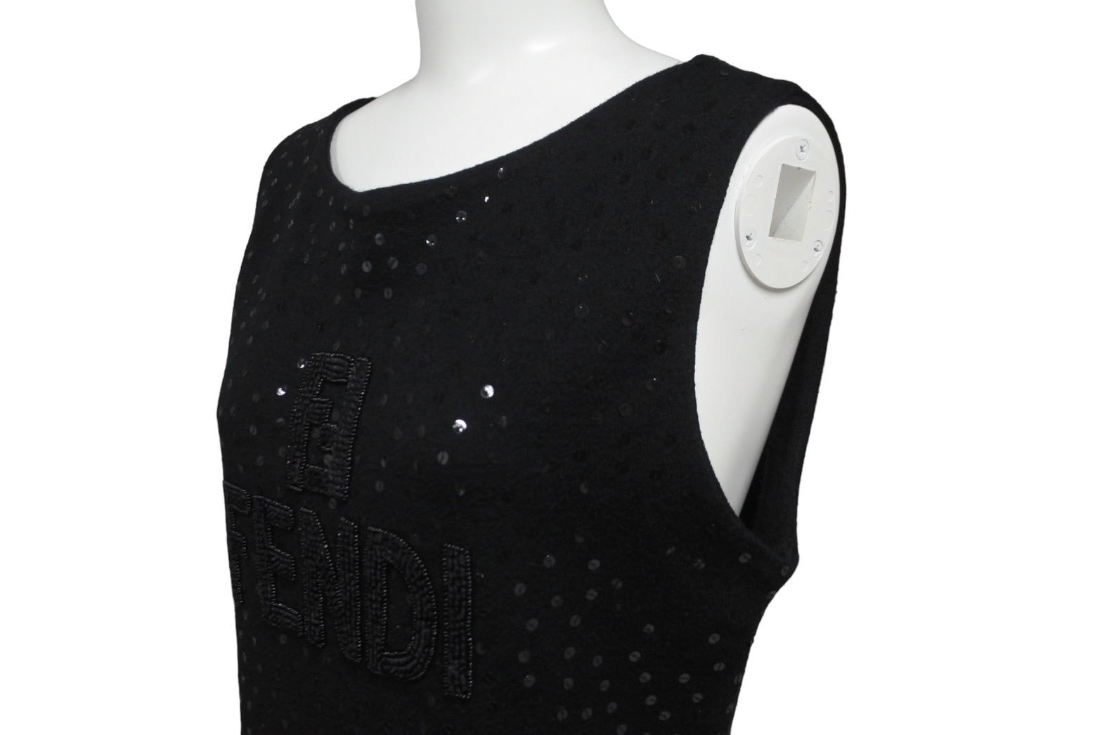 極美品 FENDI フェンディ タンクトップ ニット スパンコール ロゴ刺繍 ウール アクリル サイズ38 ブラック 中古 62540