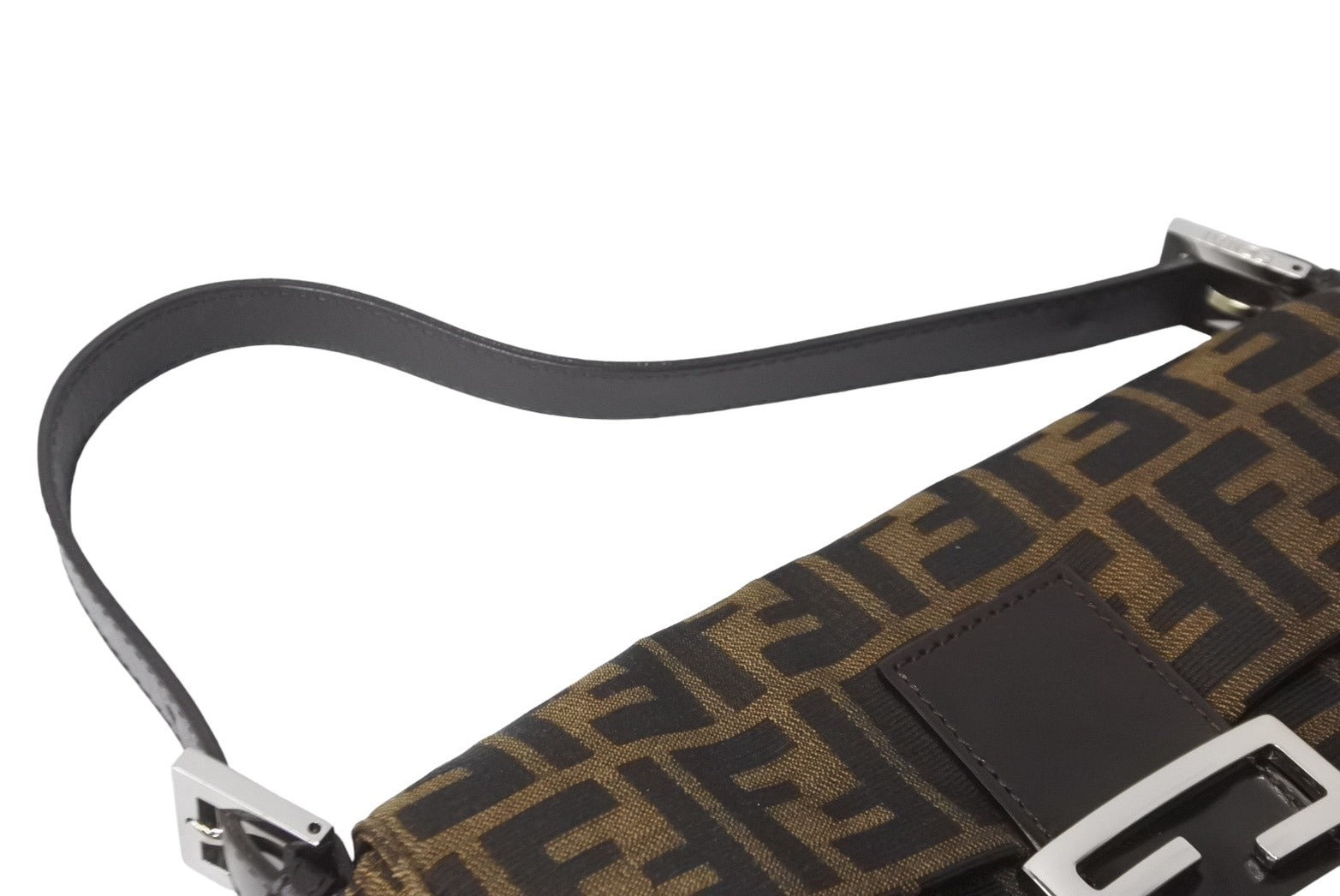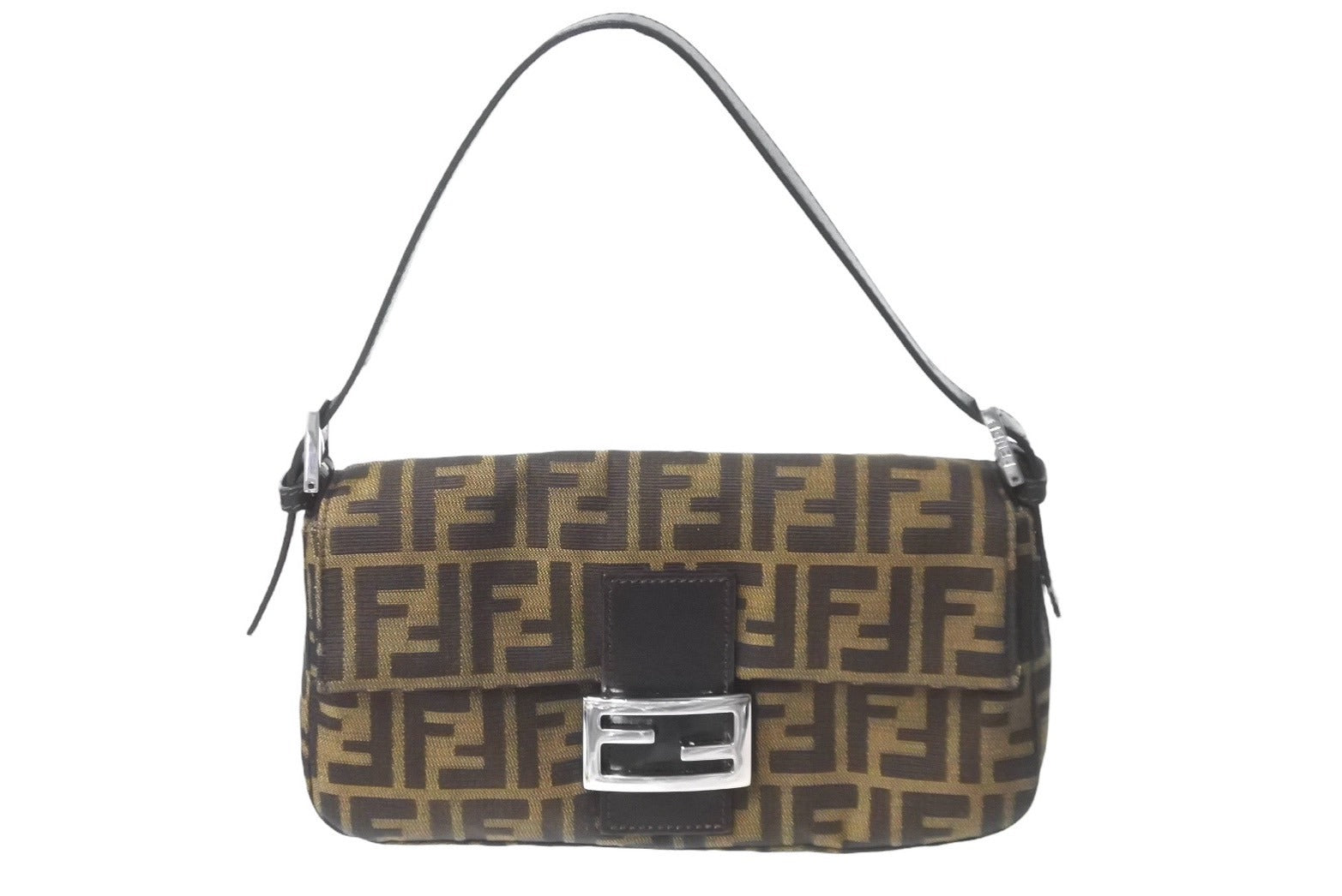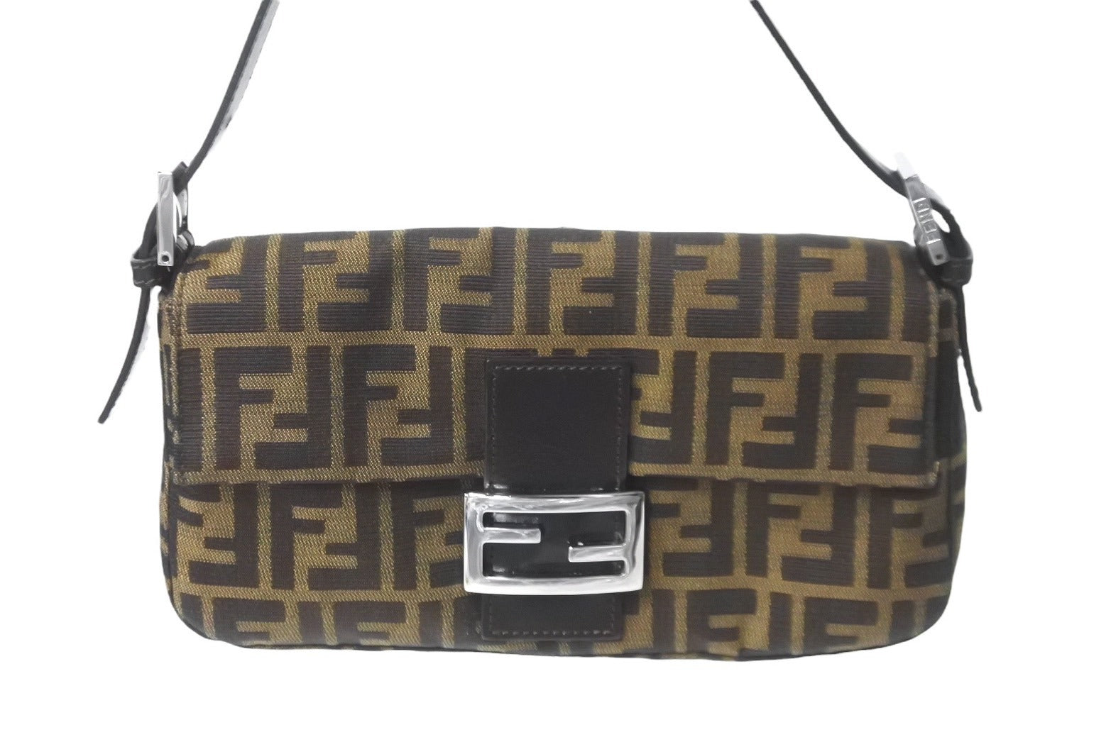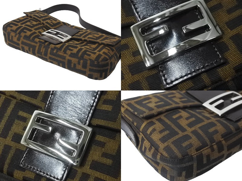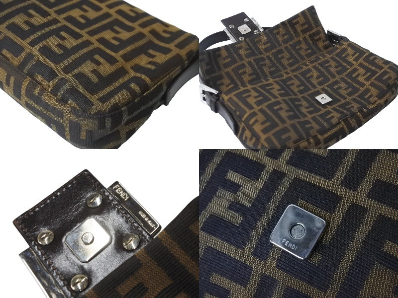 FENDI フェンディ マンマバケット ハンドバッグ ズッカ柄 ブラウン シルバー金具 キャンバス レザー 美品 中古 64187