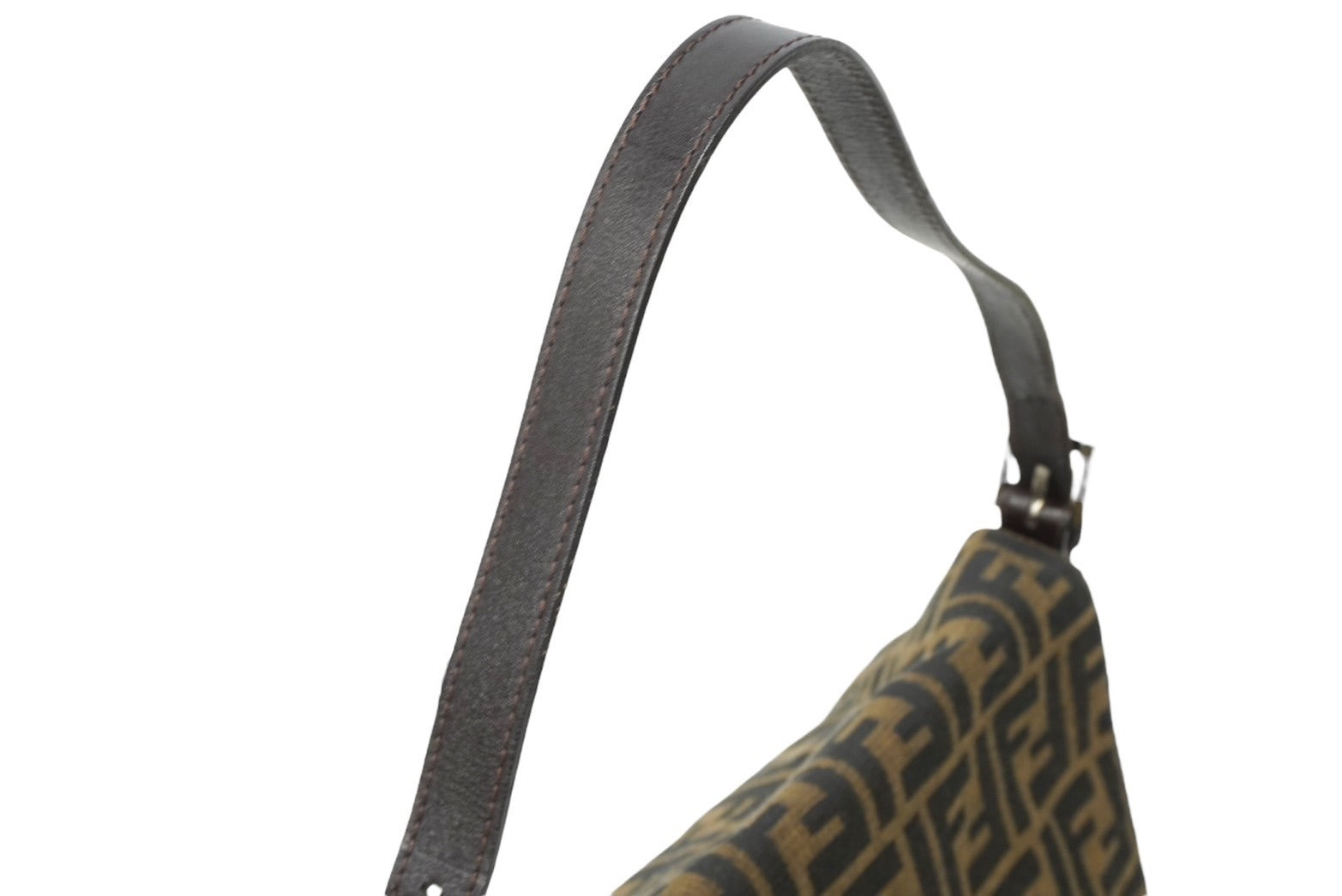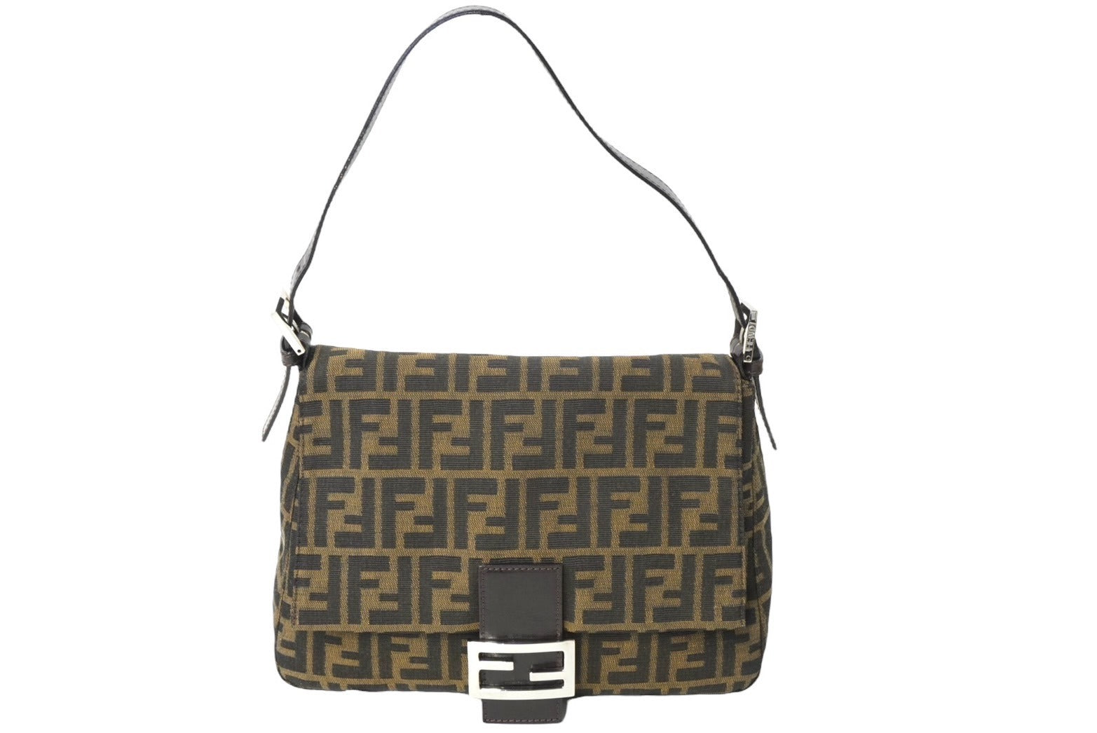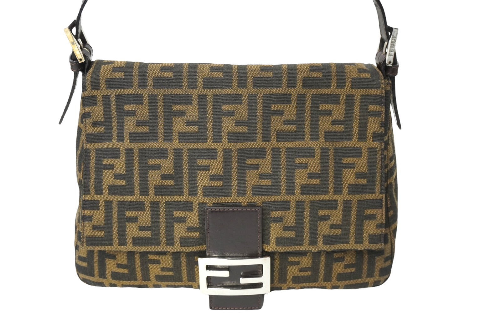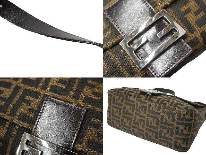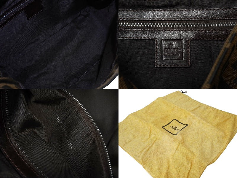 FENDI フェンディ ズッカ柄 マンマバケット ワンショルダーバッグ ブラウンロゴ コットンキャンバス レザー 美品 中古 64784