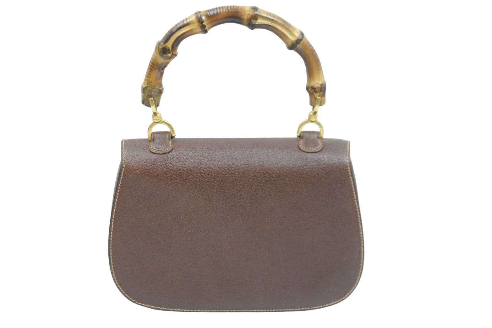 GUCCI グッチ ハンドバッグ 2WAY ショルダーバッグ ブラウン バンブー レザー ゴールド金具 美品 中古 53021