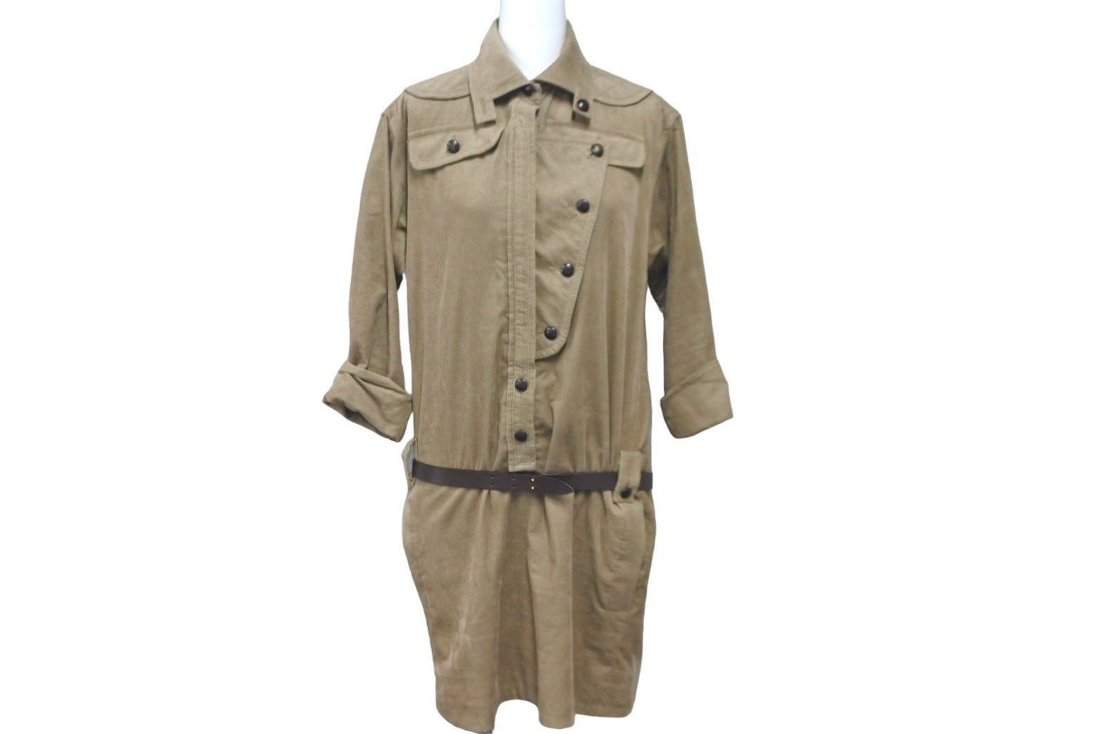 GUCCI グッチ ワンピース レザーベルト付き ベージュ コーデュロイ サイズ36 イタリア製 美品 中古 57607