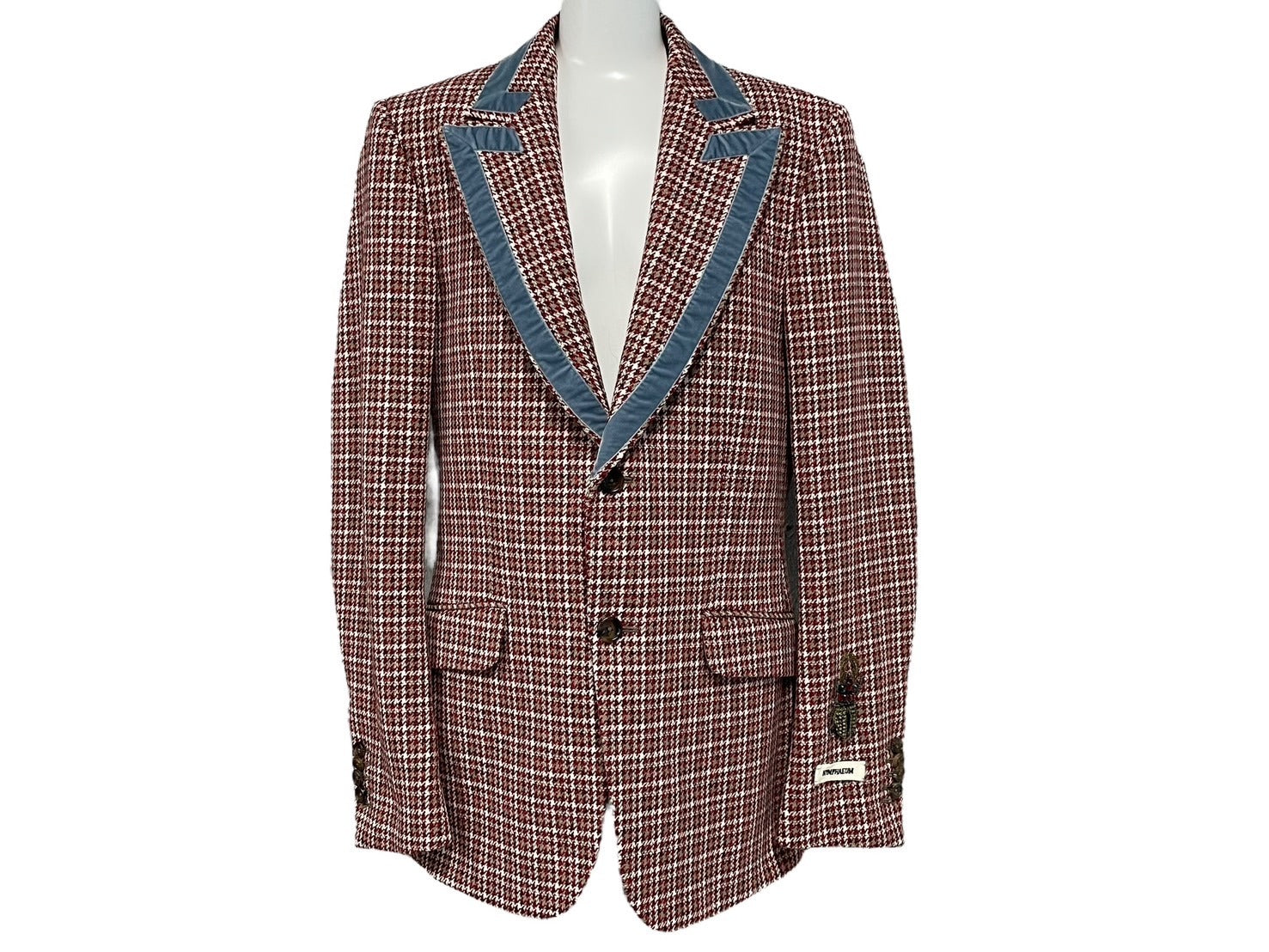 ジャケットのタグがカットされております。パンツのタグにホチキスでシールが止まってあります。そのほか特に目立つ傷や汚れもなく極美品です。