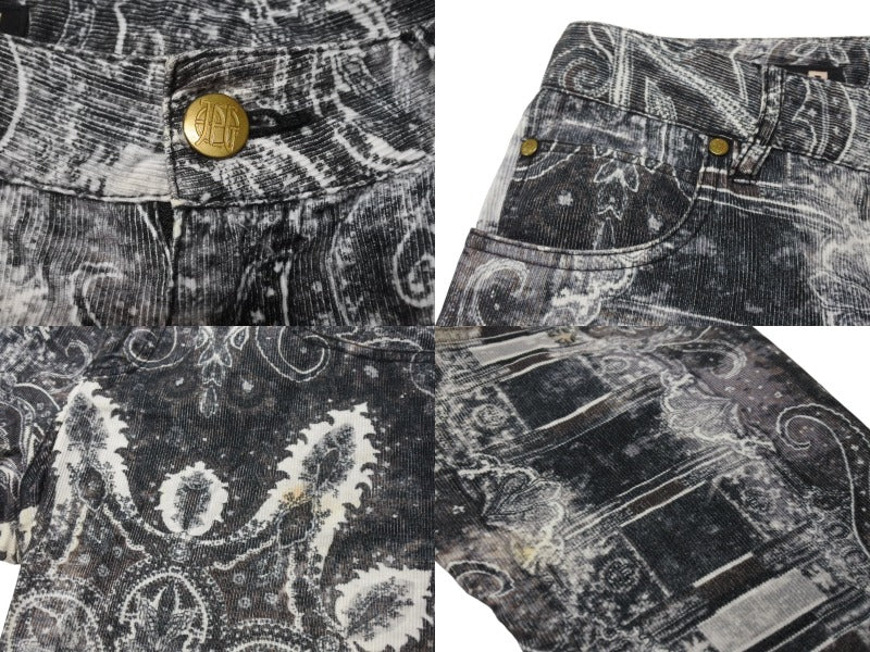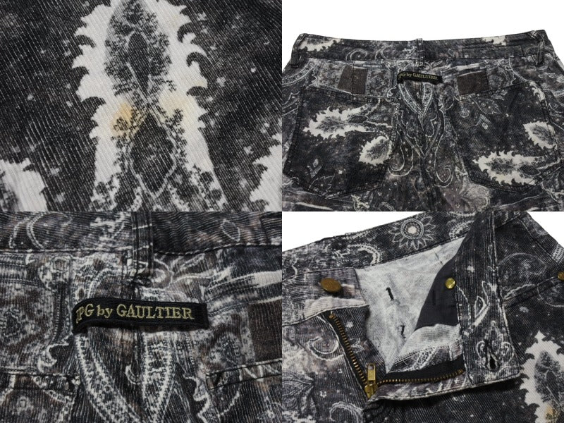 極美品 Jean Paul GAULTIER ジャンポールゴルチェ パンツ ペイズリー柄 コットンコーデュロイ ブラック ホワイト サイズ40 中古 4b004122