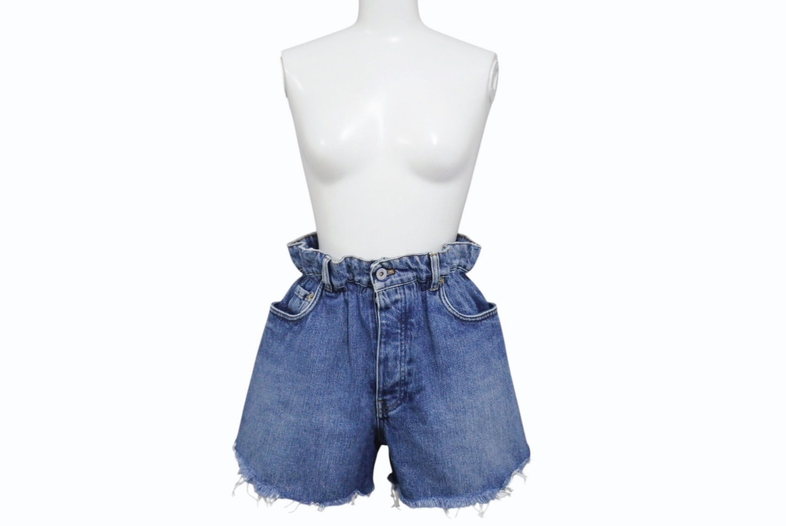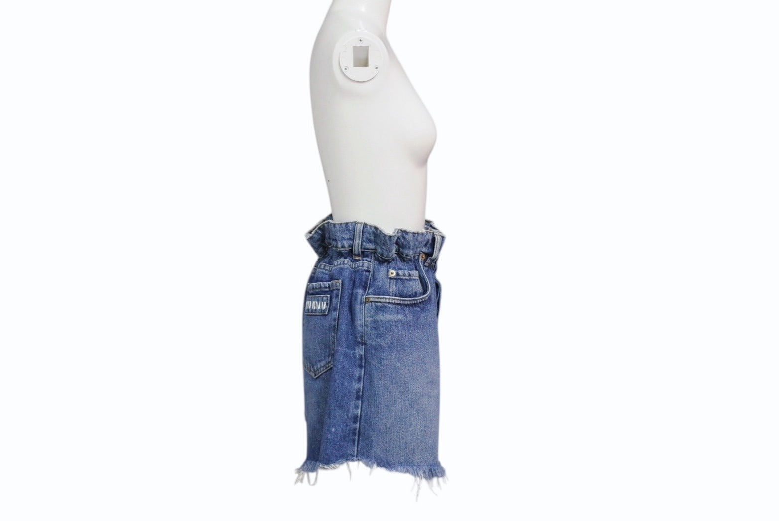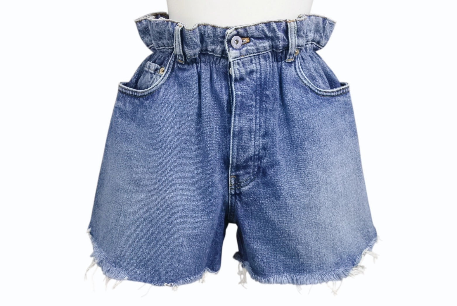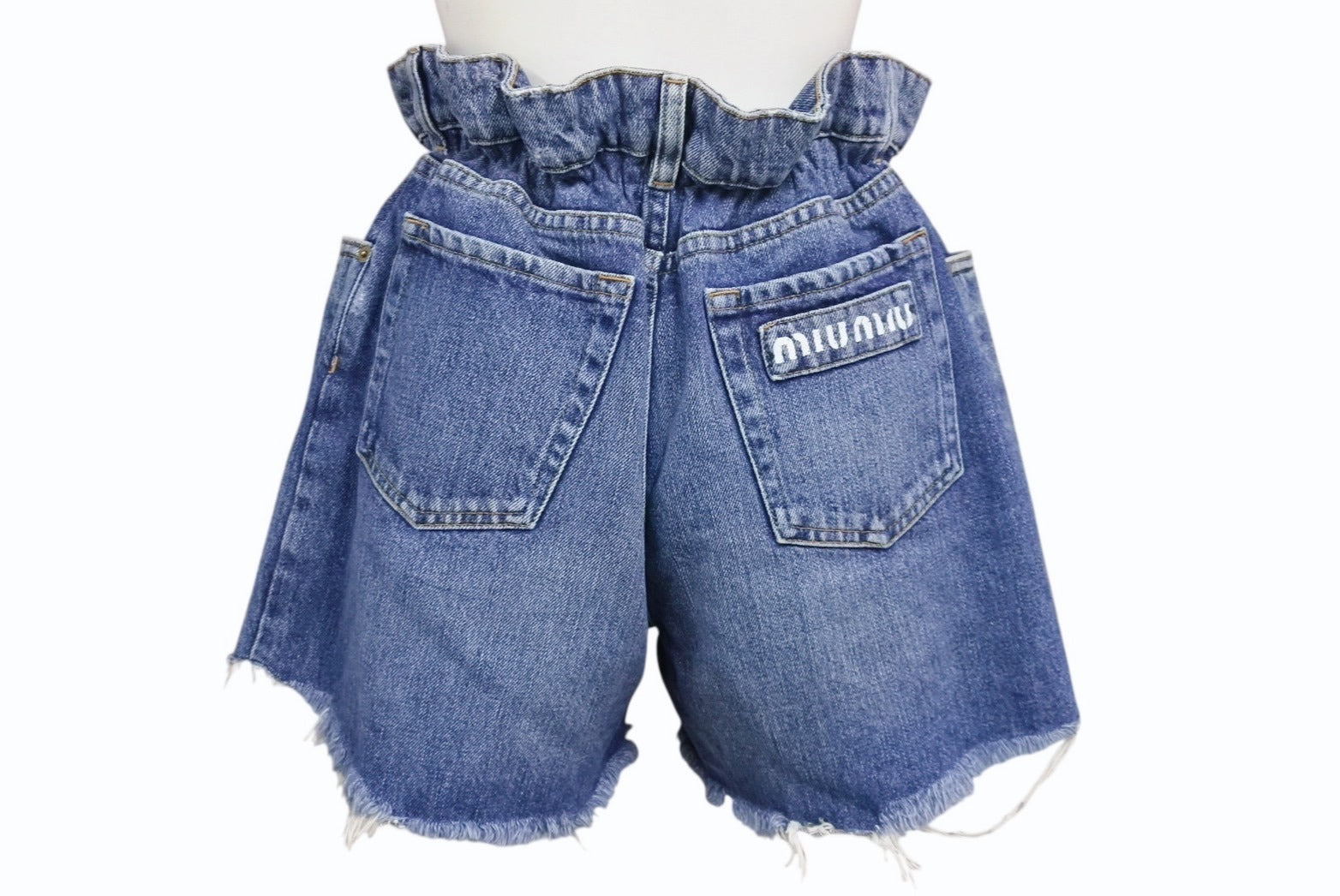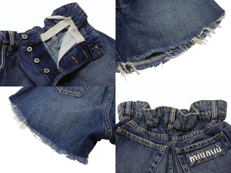 ロゴプリントや切りっぱなしデザインなどがアクセントになったデニム素材のショートパンツです。