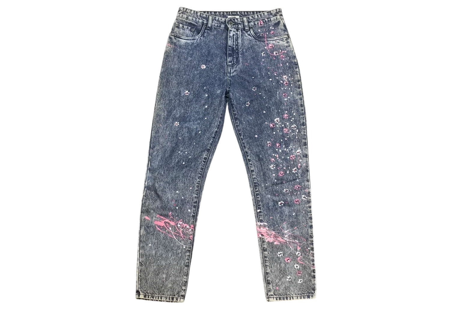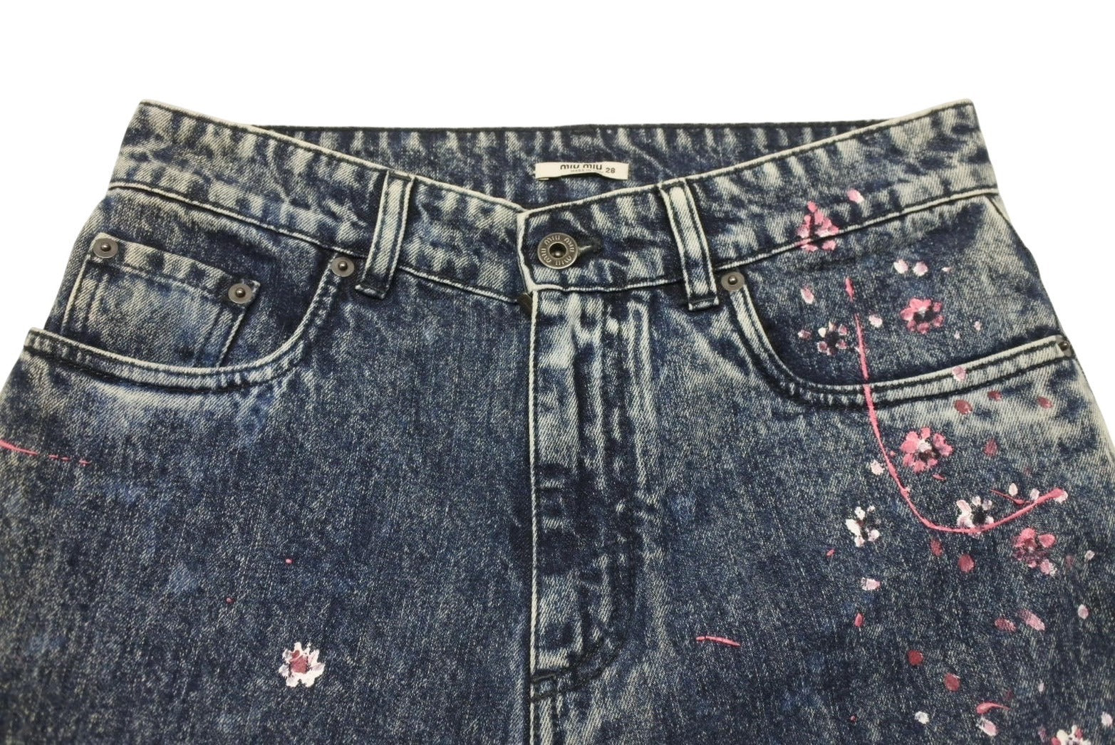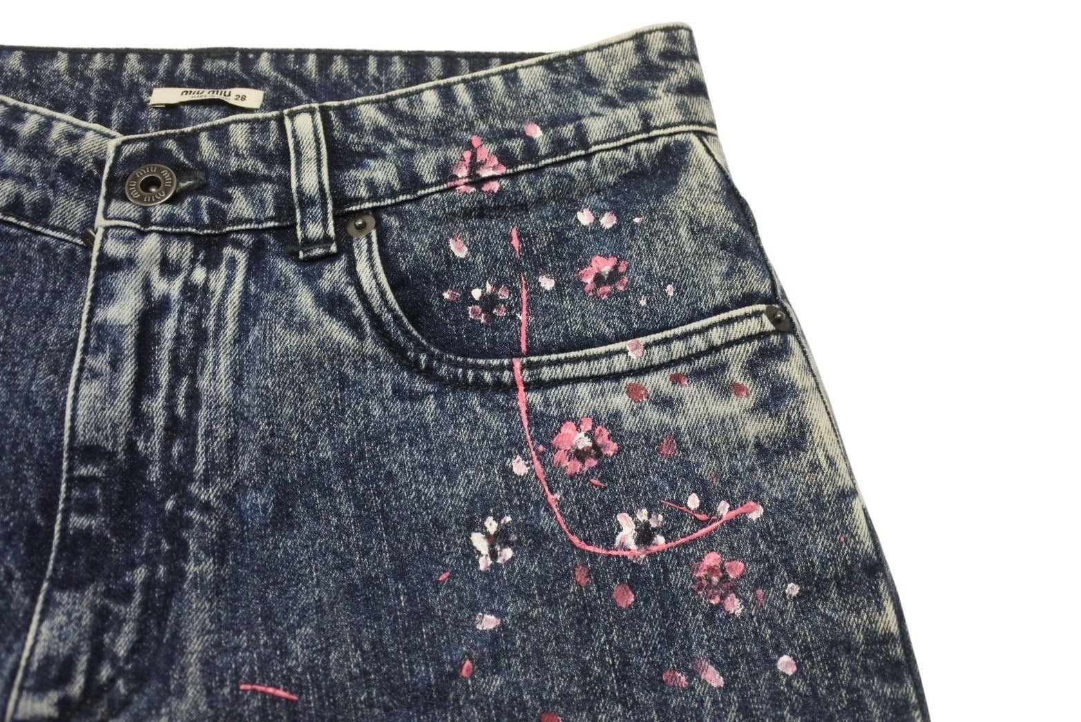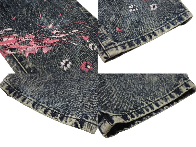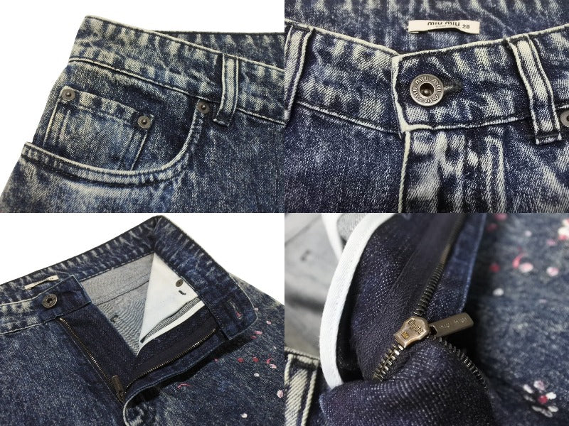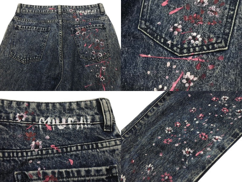 極美品 MIUMIU ミュウミュウ フラワーペイント デニムパンツ AMM1 2019 2161 コットンポリエステル ブルーピンク サイズ28 中古 4b006223
