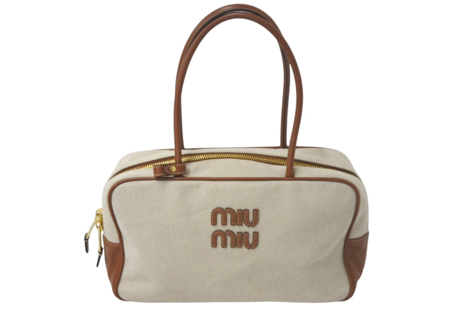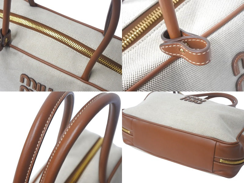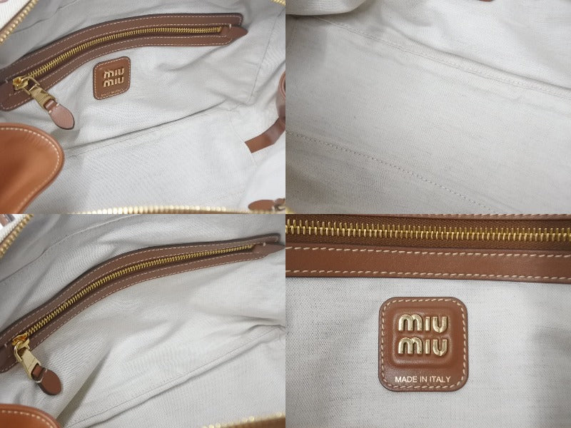 MIUMIU ミュウミュウ トップハンドルバッグ ナチュラル 5BB163 イタリア製キャンバスレザー ベージュ ベージュ 美品 中古 4c068631