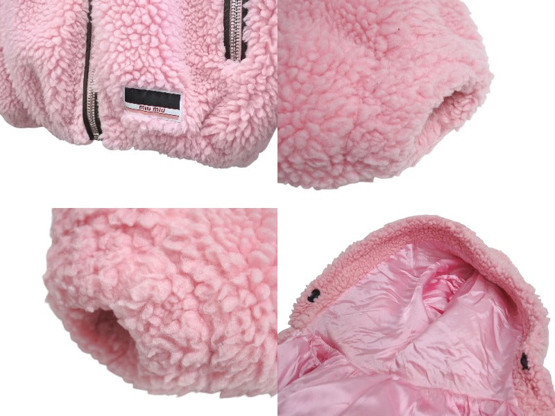 極美品 MIUMIU ミュウミュウ ボアフリースジャケット コート アウター ML584 1XLM サイズ38 ピンクロゴ 中古 4c071667