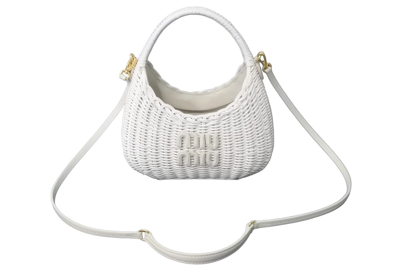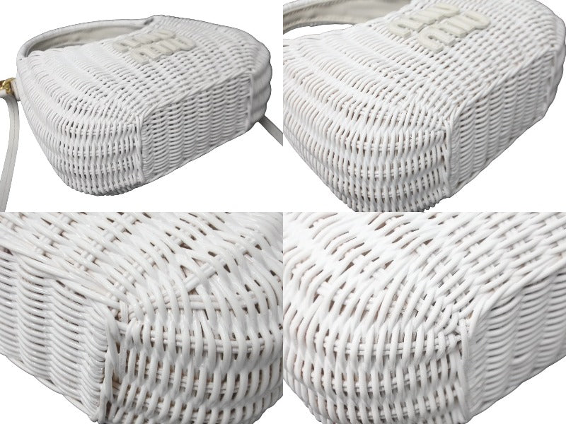 MIUMIU ミュウミュウ ワンダー ウィッカー ホーボーバッグ 籠 ホワイト ゴールド金具 美品 中古 61016