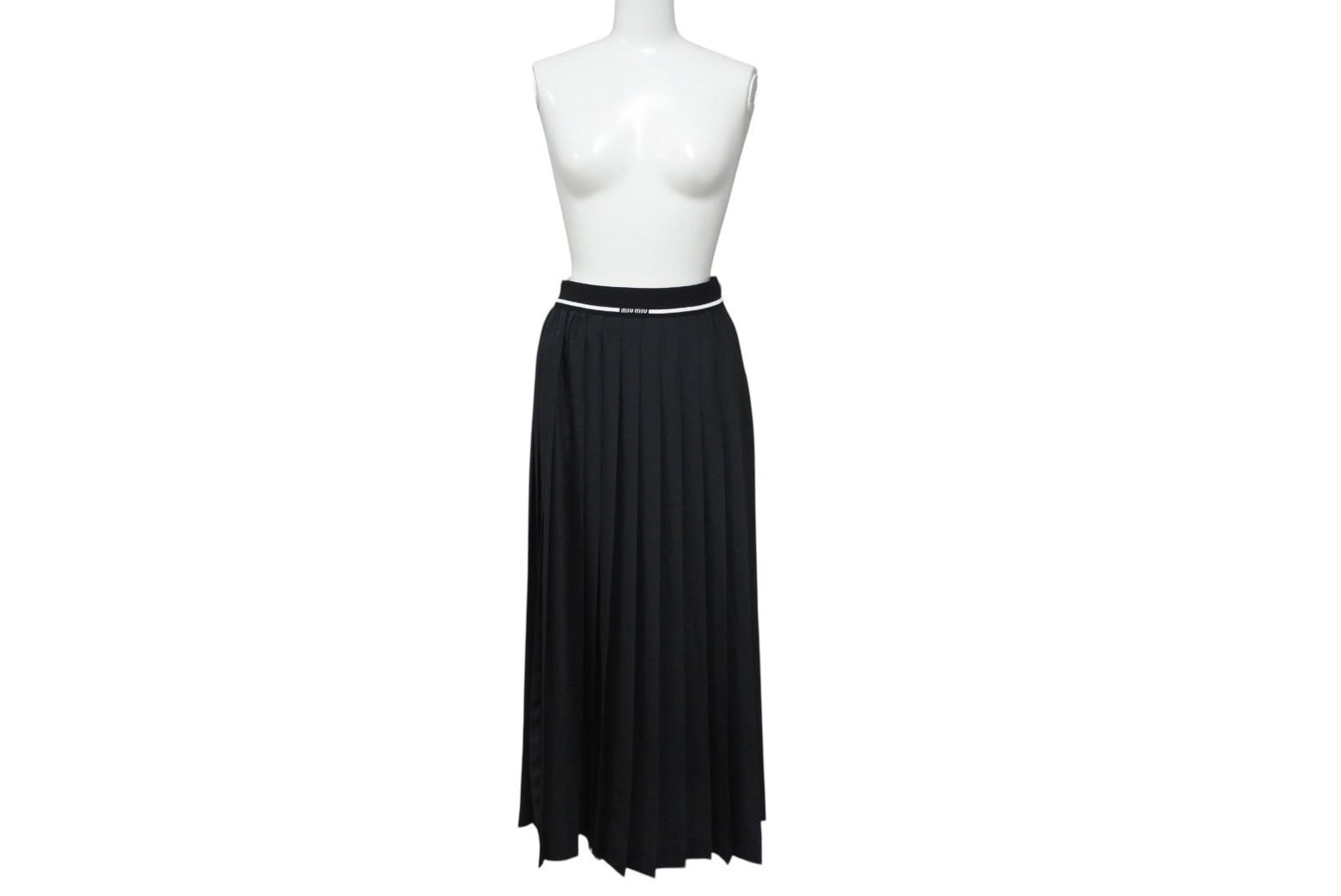 極美品 MIUMIU ミュウミュウ クレープデシンプリーツミディスカート プリーツロングスカート MG1937 サイズ38 ブラック 中古 4b005383