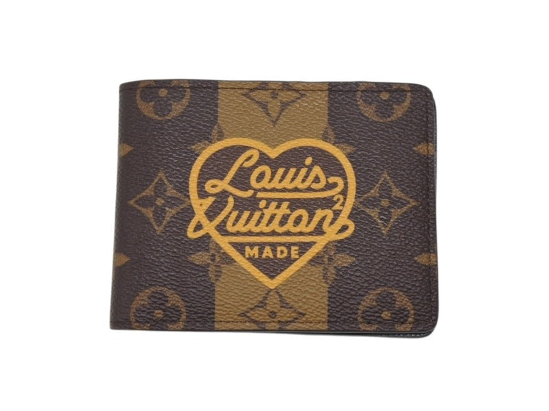 ブラウンカラーのモノグラムストライプキャンバスで仕立て、ハートのプリントに「ルイ・ヴィトン スクエアード」シグネチャーを添えた「ポルトフォイユ マルチプル」。ヴァージル・アブローと日本人デザイナーNIGOのコラボレーションから生まれました。複数の蛇口とコンパートメントを備え、高い実用性が魅力です。