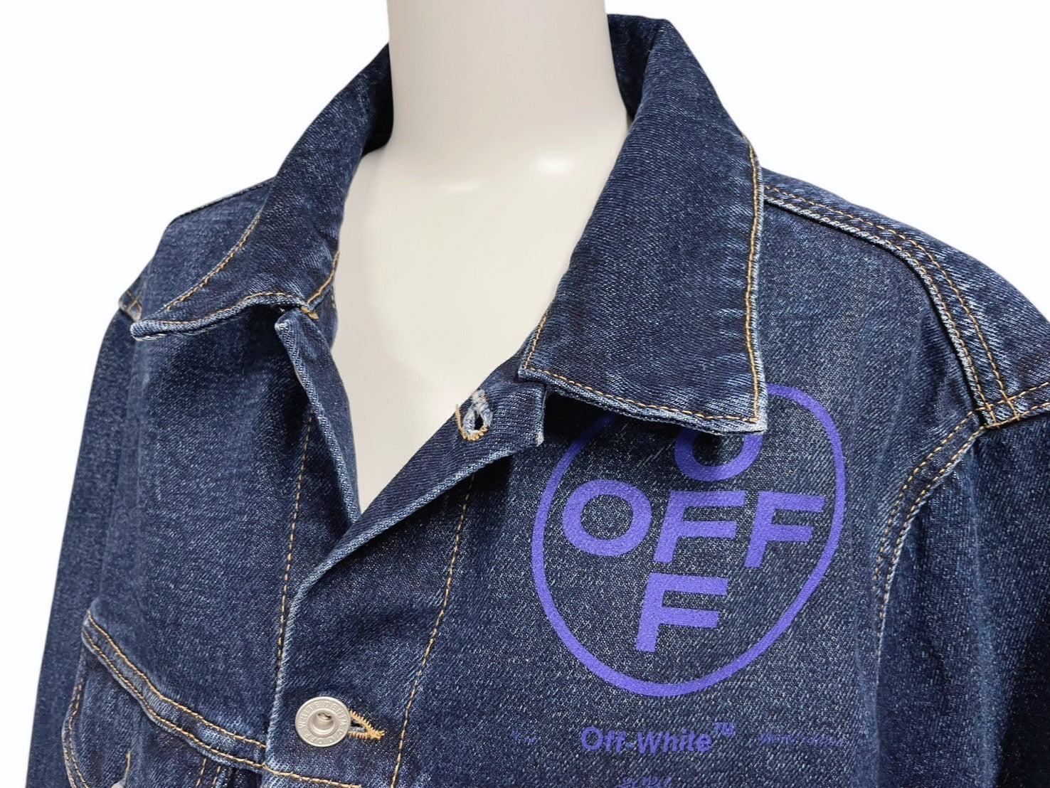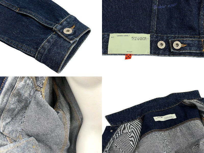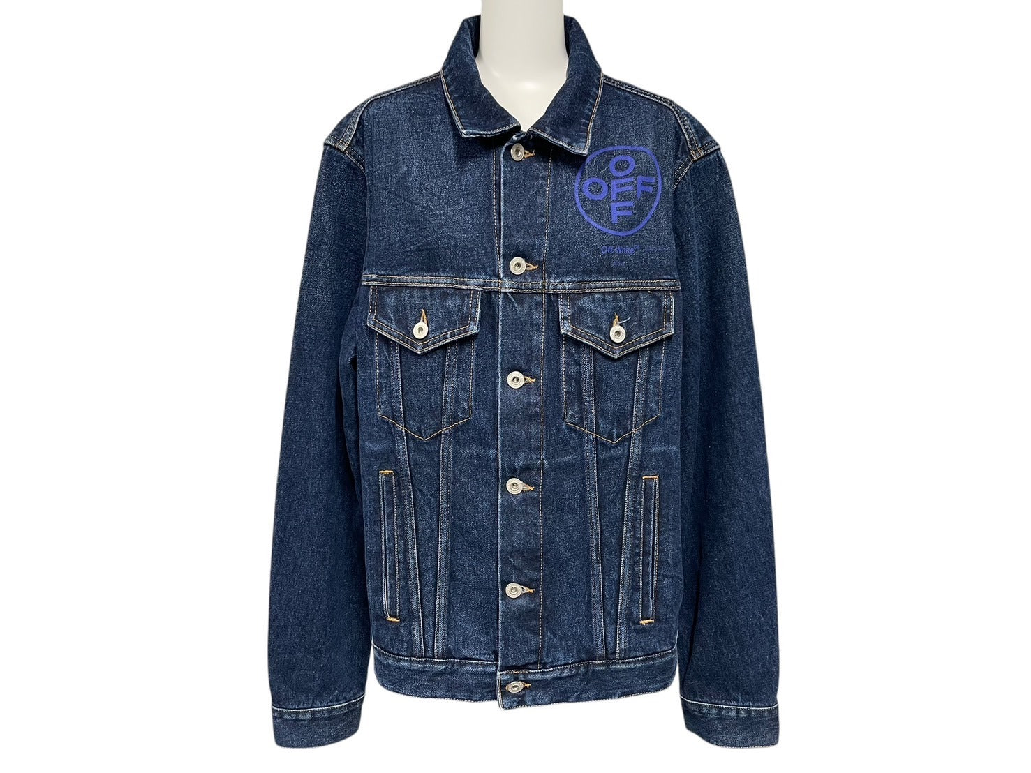 極美品 OFFWHITE オフホワイト デニムジャケット コットンネイビー サイズL OMYE005T20DEN004 中古 4c069552
